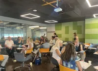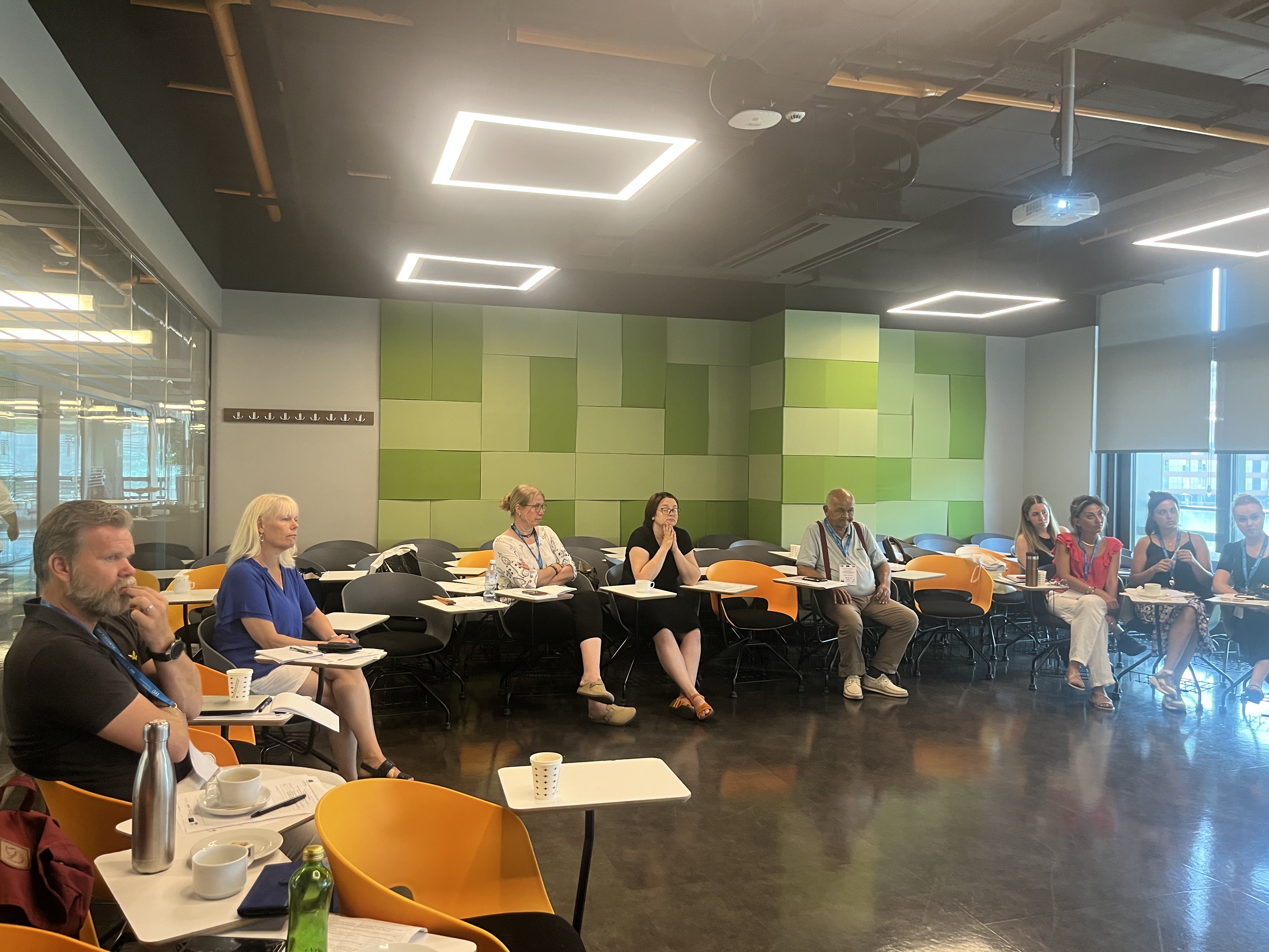 Toplantı kapsamında, ortaklarımız Finlandiya Humak Uygulamalı Bilimler Üniversitesi, İsveç Stockholm Üniversitesi, Türkiye Sağırlar Konfederasyonu ve İşaret Dili Tercümanları Derneği’nden bir araya gelen araştırmacılara, Rektör Yardımcımız Prof. Dr. Hatice Gülen eşlik ederek projemiz hakkında bilgi edinmiştir. Araştırmacılarımız, İşaret Dili eğitimi ve eğitimde İşaret dili çalışmalarına yönelik proje sonuçlarındaki ilerlemeleri tartışarak gelişim sürecine katkılarını sunmuşlardır. 2022 Mart ayından bu yana çalışmalarını yürütmekte olan EDUSIGN & SIGNEDU projesi ile araştırmacılarımız, disiplinler arası bir anlayışla sağır çalışmaları ve işaret dili tercümanlığı eğitimi ile yapay zekâ temelli işaret dili tercüme çalışmalarına odaklanmıştır.