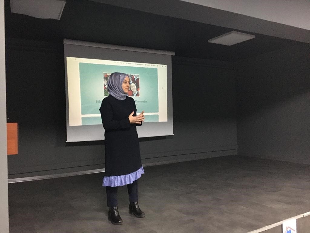 Öğr. Gör. Vahide Ulusoy Gökçek 12 Kasım Salı günü Acıbadem Hasan Tan İlkögretim Okulu'nda Veli Akademisine konuşmacı olarak katıldı. "Psikolojik Sorunlar ve İstenmeyen Davranışlar" adlı konuşmasında okul çağındaki çocukların temel ruhsal ve gelişimsel ihtiyaçlarını ve güvenli bir ortam sağlandığında elde edebilecekleri muhtemel kazanımları anlattı. Bu dönemdeki çocuklarda görülebilen olası ruhsal problemlerden ve istenmeyen davranışlardan söz eden Gökçek, veli-sınıf öğretmeni-rehberlik üçlü hattındaki güçlü iletişimin bu tür durumlara etkili müdahale etmedeki önemini vurguladı.