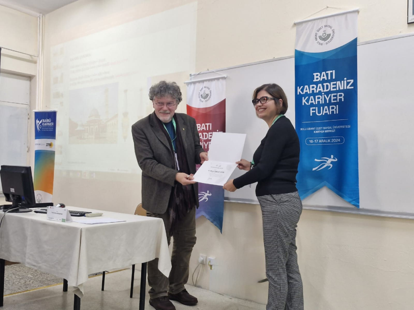 Konuşmasının ardından Şentürk'e, Bolu Abant İzzet Baysal Üniversitesi Fen Edebiyat Fakültesi Türk Dili ve Edebiyatı Bölüm Başkanı Prof. Dr. İ. Gülsel SEV tarafından katılım belgesi takdim edildi. Etkinlik, katılımcıların kitaplarının imzalanmasıyla tamamlandı.