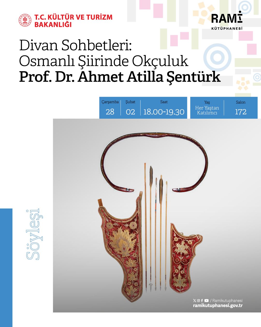 Türk Dili ve Edebiyatı Bölümü Öğretim Üyesi Prof. Dr. Ahmet Atillâ ŞENTÜRK ile Rami Kütüphanesinde her ay bir defa düzenlenen ''Divan Sohbetleri''nin dördüncüsü, ''Osmanlı Şiirinde Okçuluk'' konu başlığıyla 28 Şubat 2024 Çarşamba günü gerçekleştirildi.