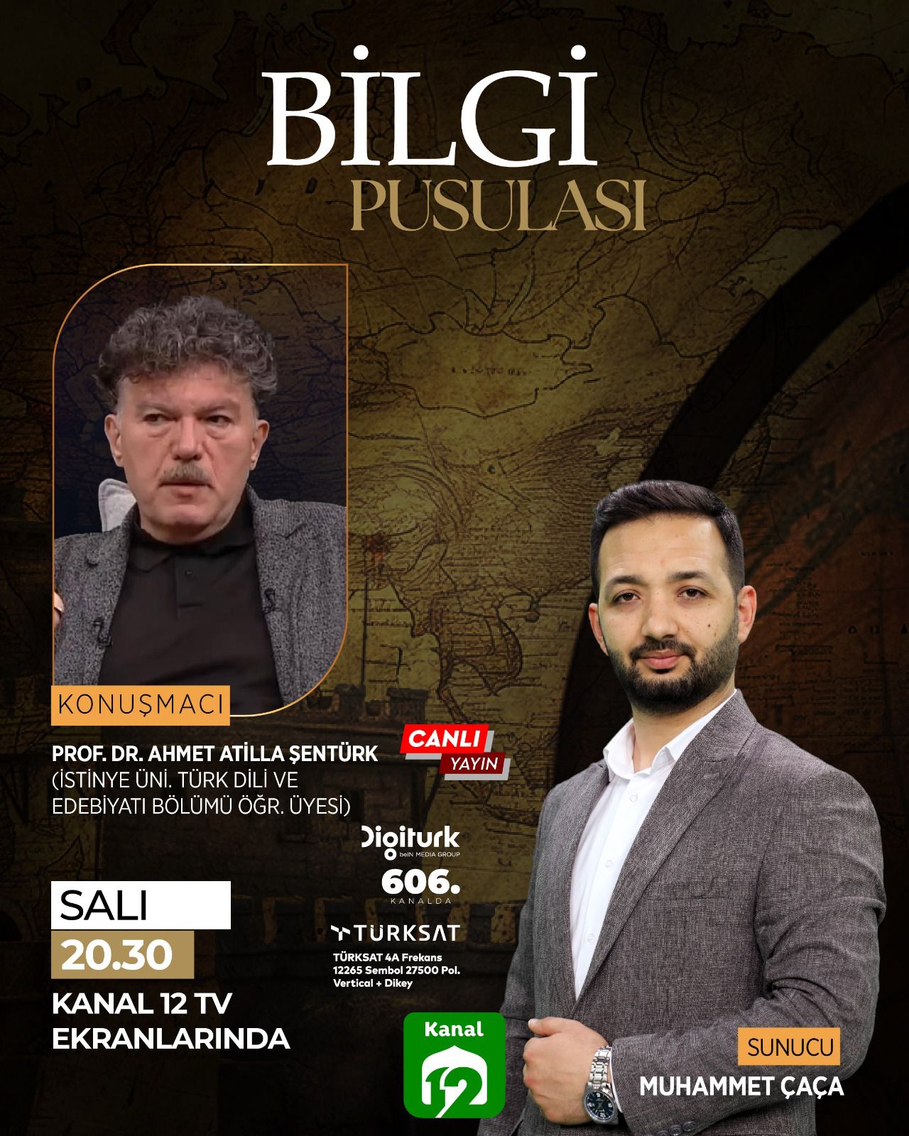 Türk Dili ve Edebiyatı Bölümü Öğretim Üyesi Prof. Dr. Ahmet Atillâ ŞENTÜRK, 12 Kasım 2024 Salı akşamı Kanal 12'de Muhammet ÇAÇA'nın sunduğu ''Bilgi Pusulası'' adlı programa konuk olacak.