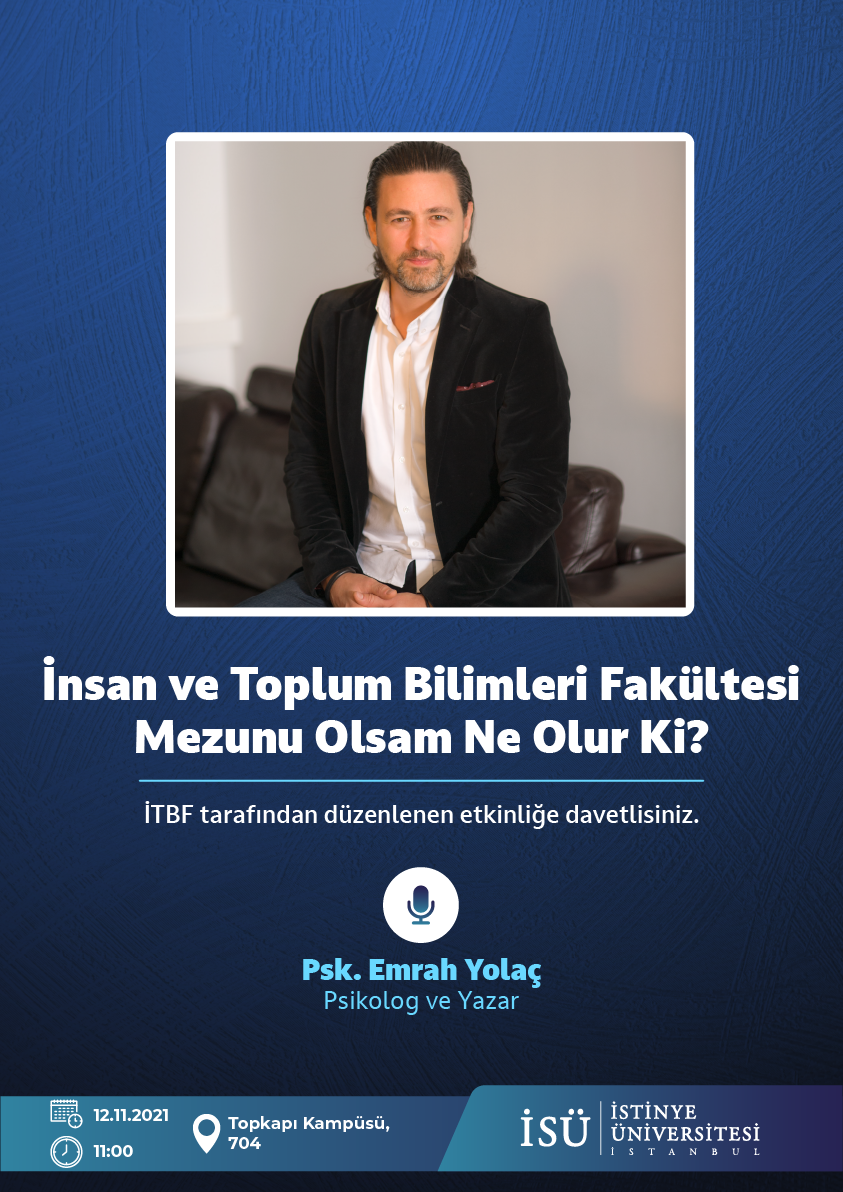 "İnsan ve Toplum Bilimleri Fakültesi Mezunu Olsam Ne Olur Ki?" başlıklı konuşma serimizin ilk oturumunda psikolog ve yazar Emrah Yolaç'ı ağırlıyoruz.