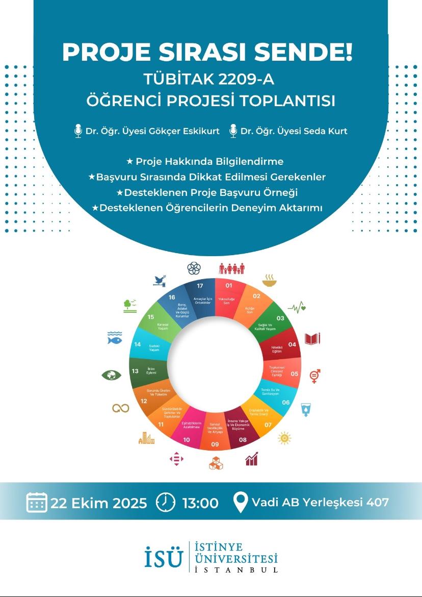 İnsan ve Toplum Bilimleri Fakültesinde 22 Ekim 2025 tarihinde TÜBİTAK 2209-A Öğrenci Projesi toplantısı başta Fakülte Dekanı Prof. Dr. Işıl Baş de Oliveira olmak üzere akademisyen ve öğrencilerin katılımıyla gerçekleştirildi. Toplantıda proje hakkında bilgilendirme, başvuru sırasında dikkat edilmesi gerekenler, desteklenen proje başvurusu örneği, desteklenen öğrencilerin deneyim aktarımı gibi konularda Dekan Yardımcıları Dr. Öğr. Üyesi Gökçer Eskikurt ve Dr. Öğr. Üyesi Seda Kurt tarafından bilgi verildi.