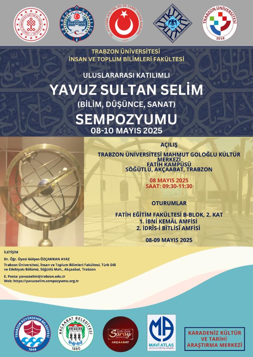 Trabzon Üniversitesi İnsan ve Toplum Bilimleri Fakültesi ev sahipliğinde düzenlenen ve 8-10 Mayıs 2025 tarihlerinde gerçekleşen Uluslararası Katılımlı Yavuz Sultan Selim Sempozyumu'na Türk Dili ve Edebiyatı Bölümü Dr. Öğr. Üyesi Seda Kurt "Klasik Türk Şiirinde Yavuz Sultan Selim Algısı" başlıklı bildirisi ile katıldı.