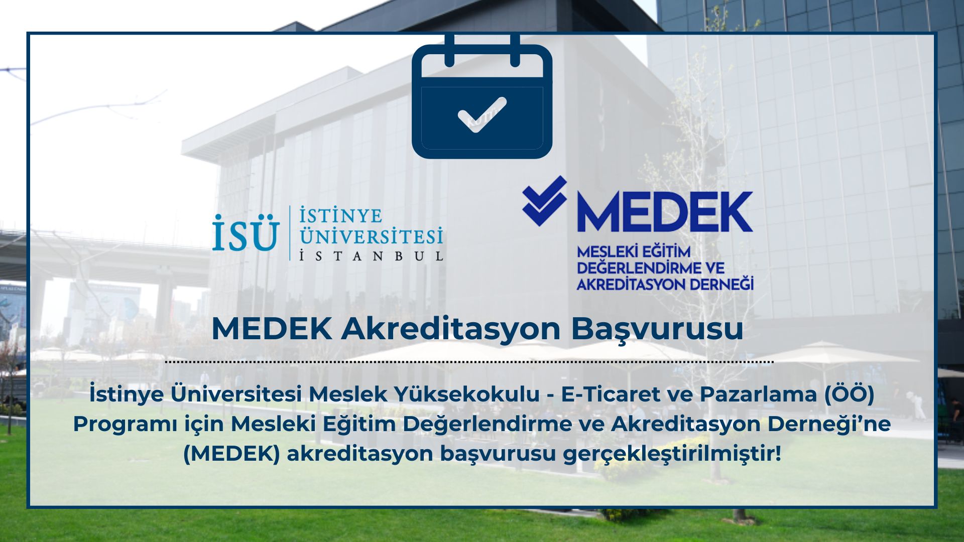 İstinye Üniversitesi Sağlık Hizmetleri Meslek Yüksekokulu bünyesinde yer alan Ameliyathane Hizmetleri (Örgün Öğretim) Programı, eğitim kalitesini ulusal standartlarda belgelendirmek amacıyla Meslek Yüksekokulları Eğitim Değerlendirme ve Akreditasyon Derneği (MEDEK)’e akreditasyon başvurusunda bulunmuştur.