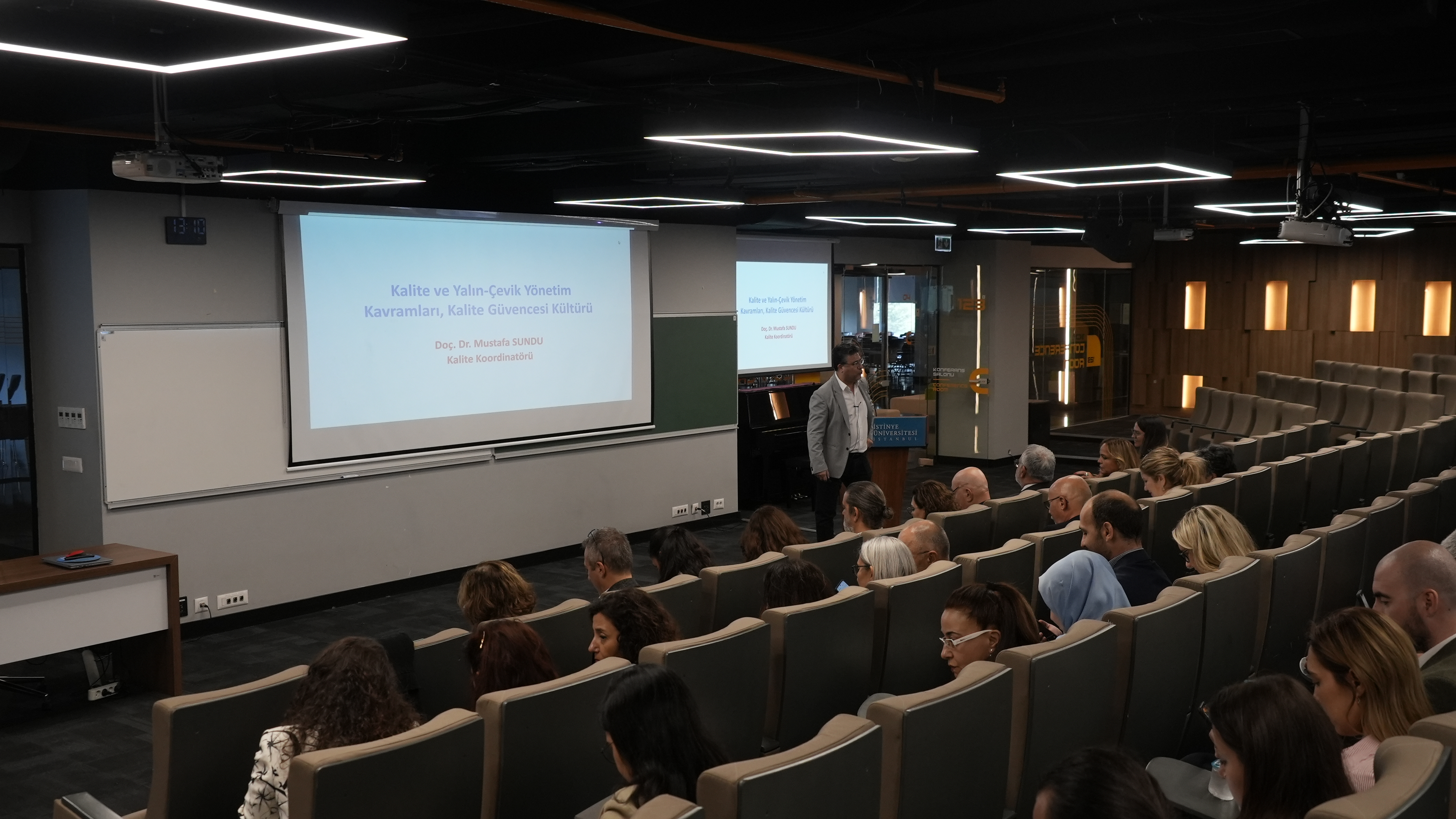 Üniversitemiz, akademik ve idari yöneticilerin liderlik ve yönetim becerilerini desteklemek amacıyla bir eğitim programı gerçekleştirdi. Akademik ve idari birim yöneticilerine yönelik olarak düzenlenen “Kalite, Yalın Yönetim ve Liderlik: Kurumsal Dönüşümün Temel Taşları” başlıklı eğitim, 19 Eylül 2025 Cuma günü başarıyla gerçekleştirildi.