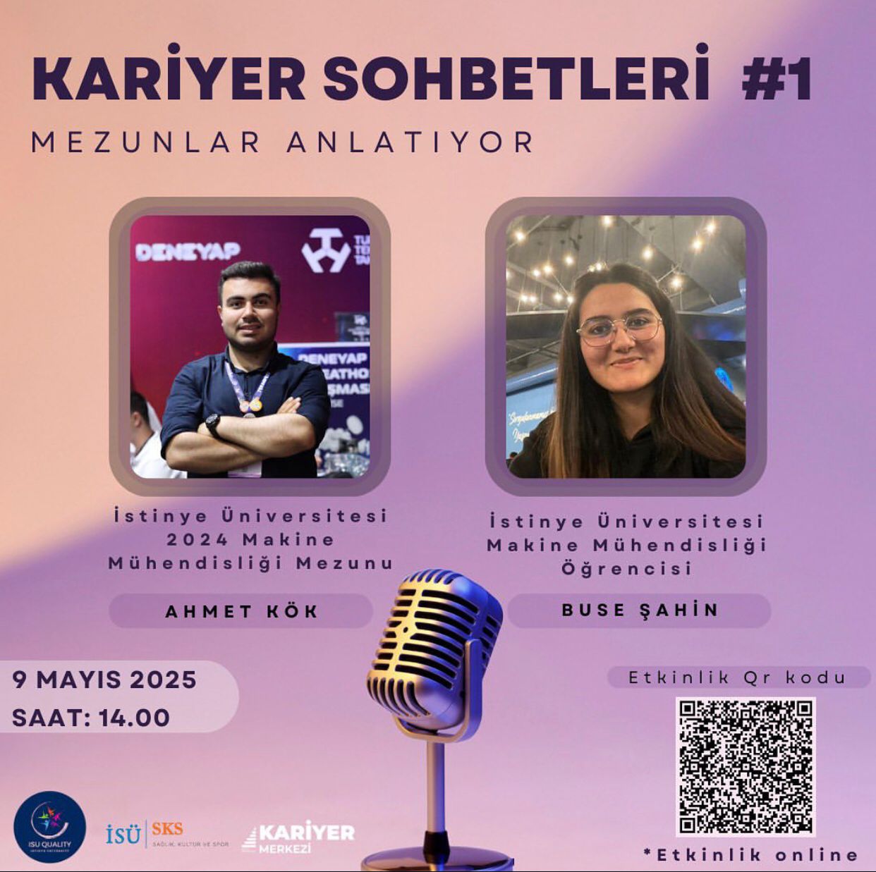 Etkinliğe, üniversitemizin Makine Mühendisliği programından mezun olan Ahmet KÖK katılarak kariyer yolculuğunu, karşılaştığı zorlukları ve bu süreçte edindiği deneyimleri öğrencilerimizle paylaştı. Makine Mühendisliği programı öğrencisi Buse ŞAHİN'in modere ettiği samimi bir sohbet ortamında gerçekleşen buluşmada, öğrenciler mezuniyet sonrası iş hayatına dair merak ettikleri soruları yöneltme fırsatı buldu.