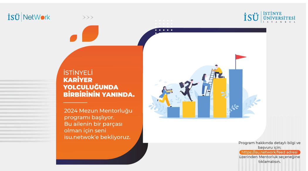 2024 Mezun Mentorluğu programı başlıyor! Bu ailenin bir parçası olman için seni isü.network'e bekliyoruz.