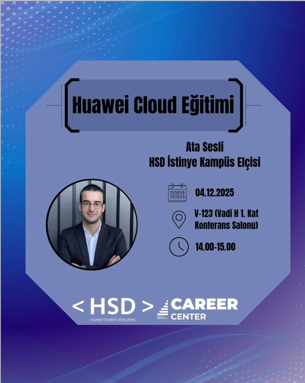 İstinye Üniversitesi Kariyer Merkezi ve Huawei Student Developers (HSD) İstinye ekibi iş birliğiyle düzenlenen : Huawei Cloud Eğitimi"ne davetlisiniz.