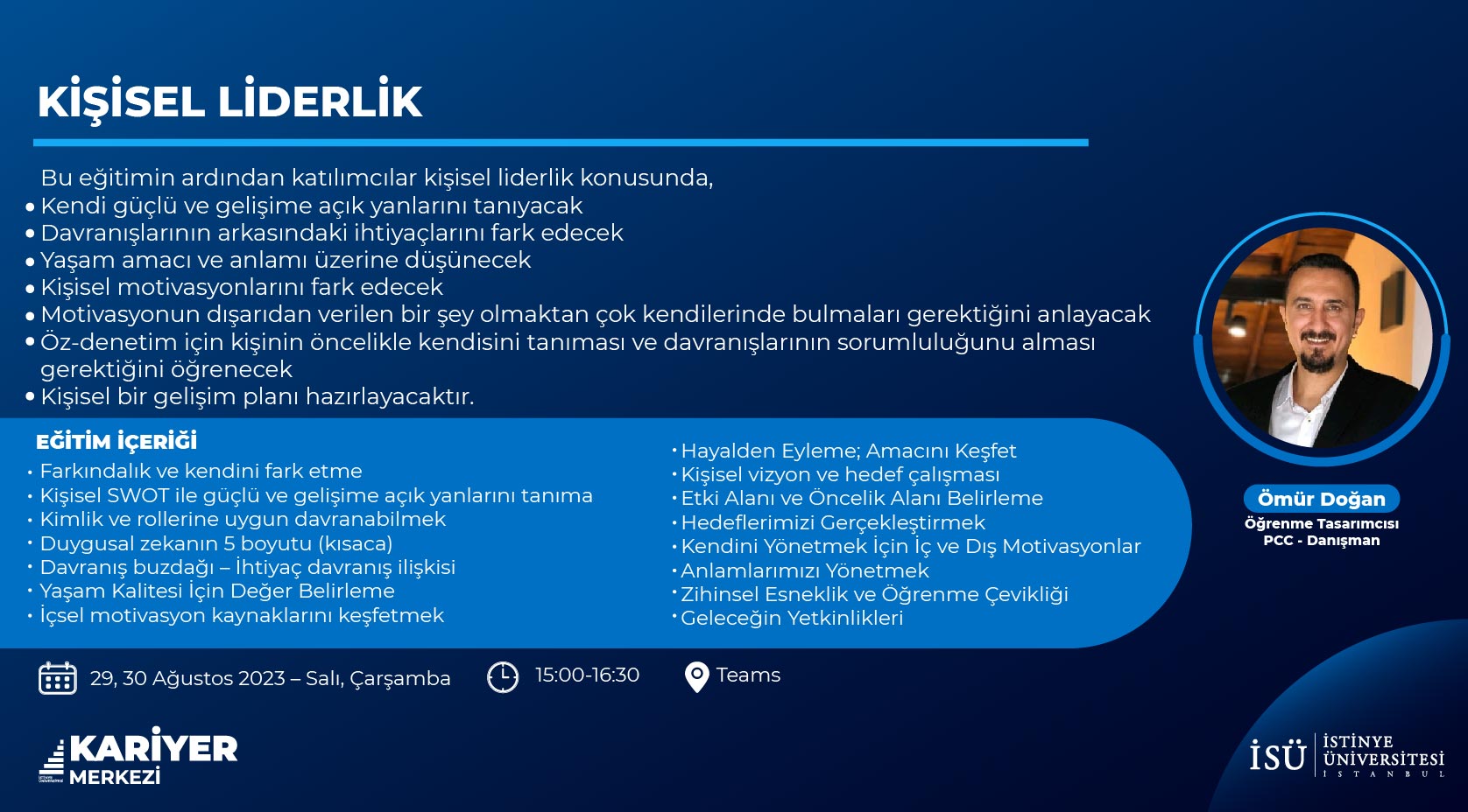 29-30 Ağustos tarihinde Kişisel Liderlik eğitimi verilecektir.