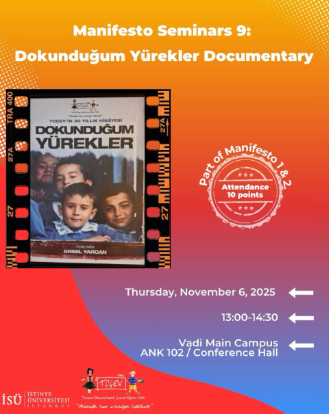 Manifesto Seminerleri serimizin dokuzuncu oturumunda, TOÇEV’in 30 yıllık hikayesini anlatan “Dokunduğum Yürekler” belgeselinin gösterimi ile sizlerleyiz.