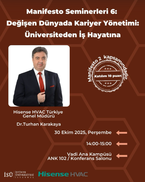 Hisense HVAC Türkiye Genel Müdürü Dr. Turhan Karakaya, üniversite yıllarından profesyonel iş yaşamına geçiş sürecinde kariyer yönetimi üzerine değerli deneyimlerini paylaşacak.