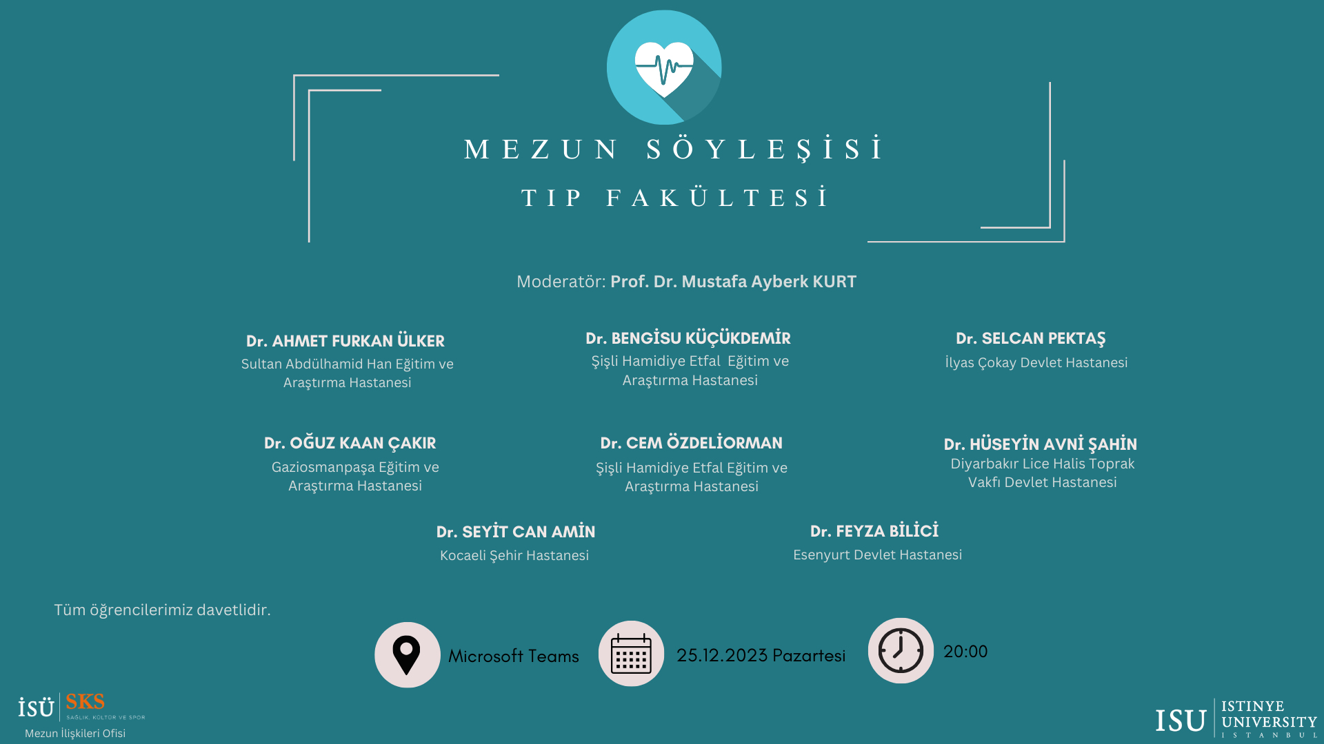Tıp Fakültesi Mezun Söyleşisi etkinliğinin katılım linkine https://isu.network/events/415 adresi üzerinden ulaşabilirsiniz.