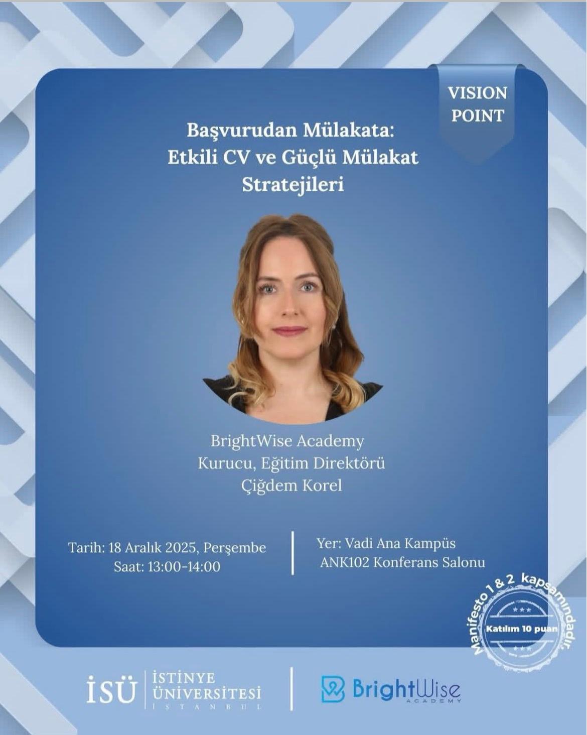 Etkili CV hazırlama ve mülakat süreçlerinde öne çıkma stratejileri bu oturumda ele alınacak.