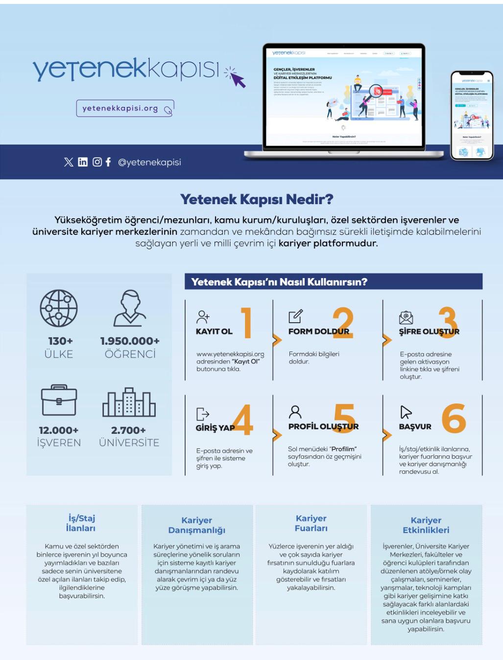 Kariyer yolculuğunda Yetenek Kapısı sana farklı fırsatlar sunuyor. Yetenek Kapısı üzerinden tek bir tık ile;