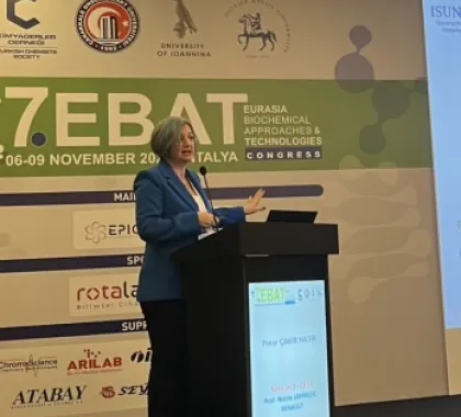 İstinye Üniversitesi Biyomedikal Mühendisliği Bölüm Başkanı ve Nanoteknoloji ve İleri Malzeme Araştırma Merkezi Müdürü Doç. Dr. Pınar ÇAKIR HATIR, 6–9 Kasım 2025 tarihlerinde Antalya’da düzenlenen “7th Eurasia Biochemical Approaches & Technologies (EBAT) Congress”e katılmıştır. Etkinlik kapsamında nanoteknoloji, ileri malzeme teknolojileri ve güncel araştırma sonuçlarına ilişkin bilimsel paylaşımlar gerçekleştirilmiştir.