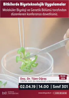 TÜBİTAK Marmara Araştırma Merkezi Gen Mühendisliği ve Biyoteknoloji Araştırma Enstitüsü uzman araştırmacılarından Doç. Dr. Tijen Oğraş'ın verdiği seminerde; bitkilerde doku kültürü çalışmalarından başlayarak gen transferlerinin yapılması ve genetiği değiştirilmiş organizmaların tanınması için uygulanan yöntemlerden bahsedildi. Bunun yanı sıra TÜBİTAK GMBE Bitki Biyoteknolojisi alanında yapılan çalışmalar öğrenciler ile paylaşıldı. Öğrencilere TÜBİTAK'ta staj olanakları konusunda bilgi verildi.