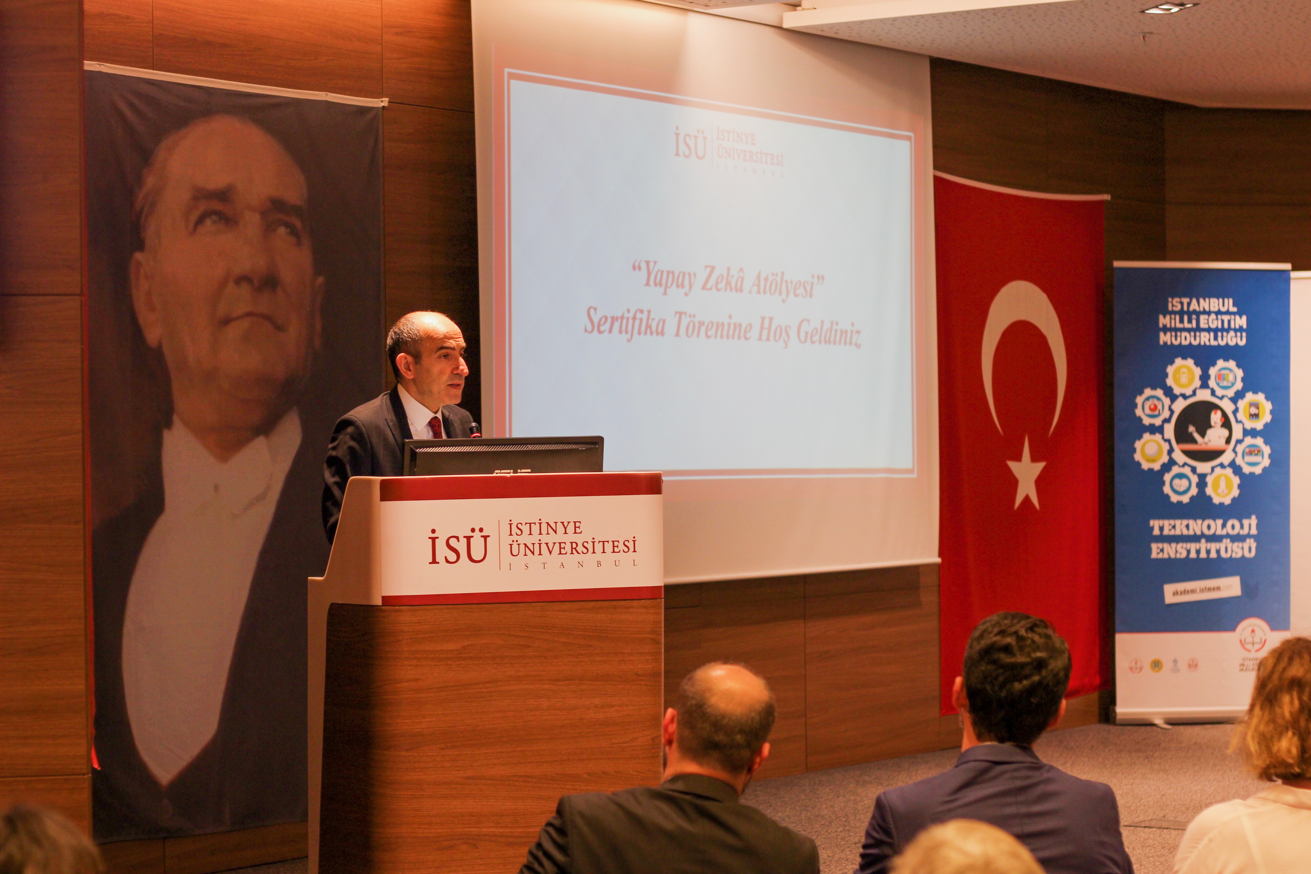 Açılış konuşmasında, yapılan programdan ötürü mutluluk duyduklarını ifade eden İstanbul Milli Eğitim Müdürü Levent Yazıcı, “Milli eğitim müdürlüğümüz ARGE birimi vasıtasıyla, öğretmen akademileri içerisinde sürekli olarak gelişimi destekleyen bir yapı oluşturmaya çalıştı. Mevcut olan birçok üniversite de bu konuda katalizör görevi gördü. Özellikle İstinye Üniversitesi yapay zeka alanında var olan birikimini, milli eğitim müdürlüğümüzle paylaştı. Müdürlüğümüzün de içinde olduğu çok güzel bir ortaklıkla, kurumsal işbirliği ile çocuklarımıza ve öğretmenlerimize bu eğitimi sunmanın çabası içerisinde oldu” dedi.