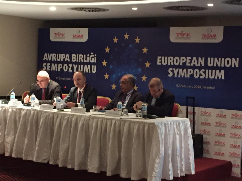 Türk Asya Stratejik Araştırmalar Merkezi (TASAM) ile Türk Avrupa Bilimsel ve Eğitimsel Araştırmalar Vakfı (TAVAK) tarafından ortaklaşa organize edilen Avrupa Birliği Sempozyumu 2 Şubat 2018 tarihinde Taksim Hill Hotel’de gerçekleştirilmiştir. Sempozyumun Siyasi Partilerin Avrupa Birliği’ne Bakışı konulu 2.oturumunda MYO Müdürümüz Sayın Doç.Dr.Fahri ERENEL moderatörlük yapmıştır.