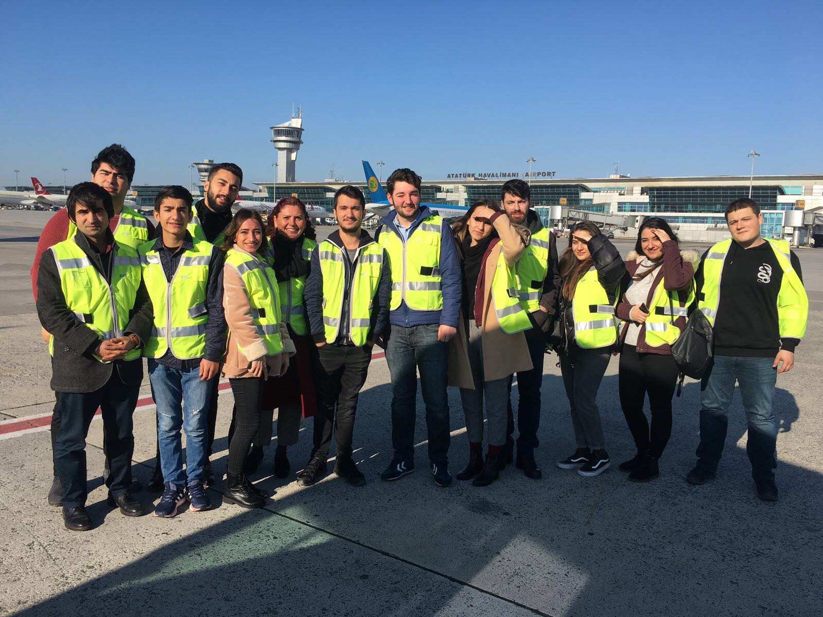 Teknik gezi kapsamında Atatürk Havalimanı’na bir ziyaret gerçekleştiren İstinye Üniversitesi Sivil Hava Ulaştırma İşletmeciliği öğrencileri, teorik olarak aldıkları bilgileri sahada görme imkanı buldu. THY hangarlarındaki uçak tipleri ve bakımları hakkında bilgi alan öğrenciler, apronda bagaj, ikram, yolcu, yükleme boşaltma, yakıt alma, uçak iniş ve kalkış işlemlerini yakından izleme fırsatı buldular. Şut altında bagaj ve güvenlik bilgilerinin de gösterildiği ziyarette, Ramp Kule’de uygulama yapıldı. Check-in ve boarding işlemlerini yerinde gören öğrenciler, Turkish Do&Co ziyaretiyle Atatürk Havalimanı’ndaki günlerini sonlandırdılar.