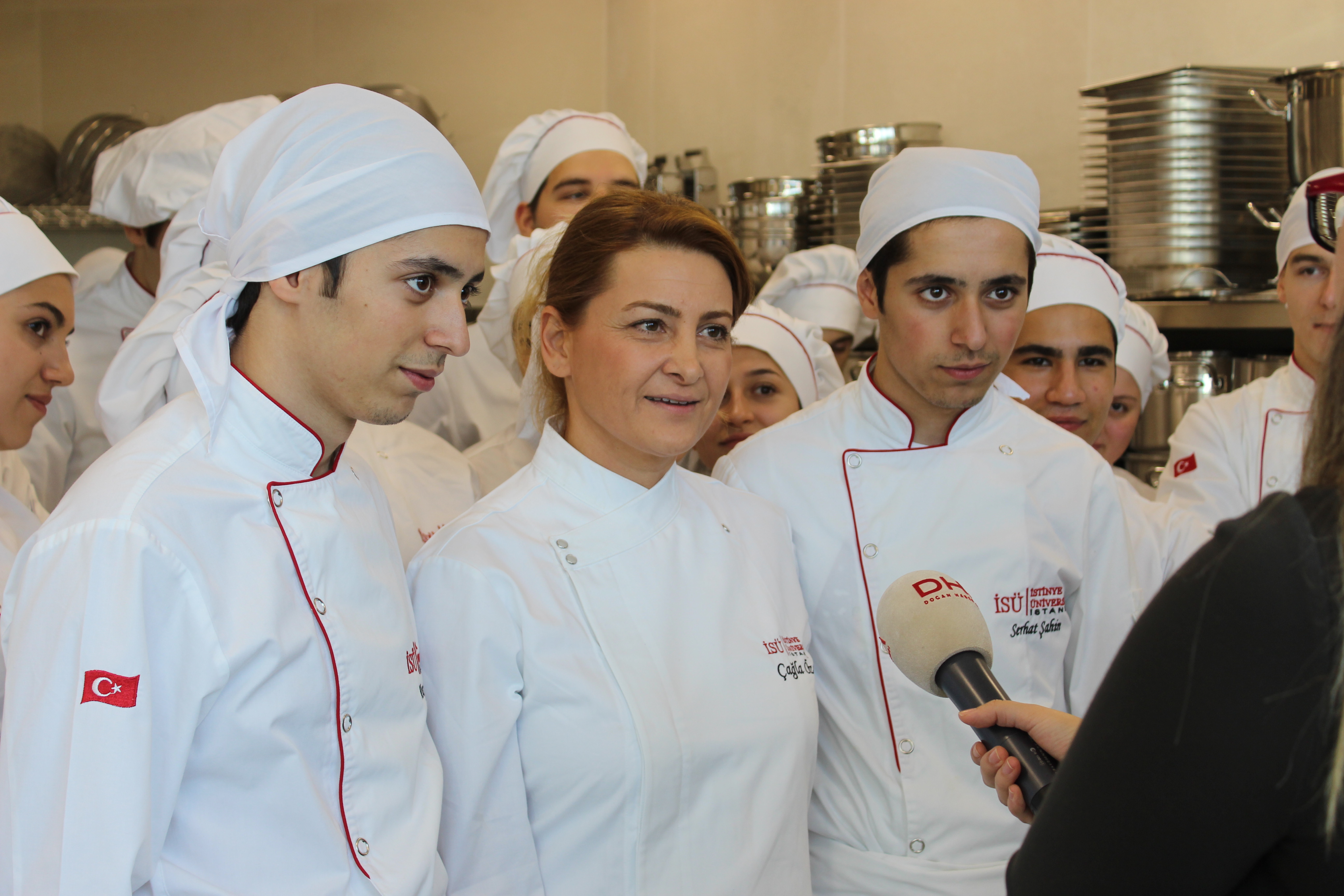 Yrd. Doç. Dr. Çağla ÖZER liderliğinde gerçekleştirdikleri özel menü ile hamburger, levrek, granolalı kabak ve kerebiç tatlısı ikramlarını misafirlerine sunan İstinyeli Aşçılık Programı öğrencileri konuklardan büyük beğeni aldılar.