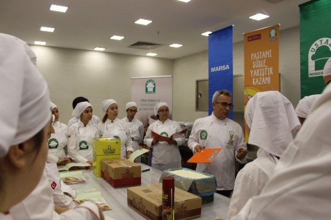 MARSA tarafından Aşçılık programından 25 öğrenciye pastacılık eğitimi verilmiş ve pasta süsleme yarışması yapılmıştır. Etkinlik kapsamında, Marsa Demonstrasyon Şefi Yaşar SADIKOĞLU tarafından pastacılık çeşitleri ve yağ kullanımı konusunda eğitim verilmiştir. Butik Pastacılık konusunda Türkiye’de isim yapmış olan Şef.Deniz DEBEDİL’in ‘’Şeker Hamuru ile Pasta Süsleme Teknikleri’’ eğitimiyle devam etmiştir.