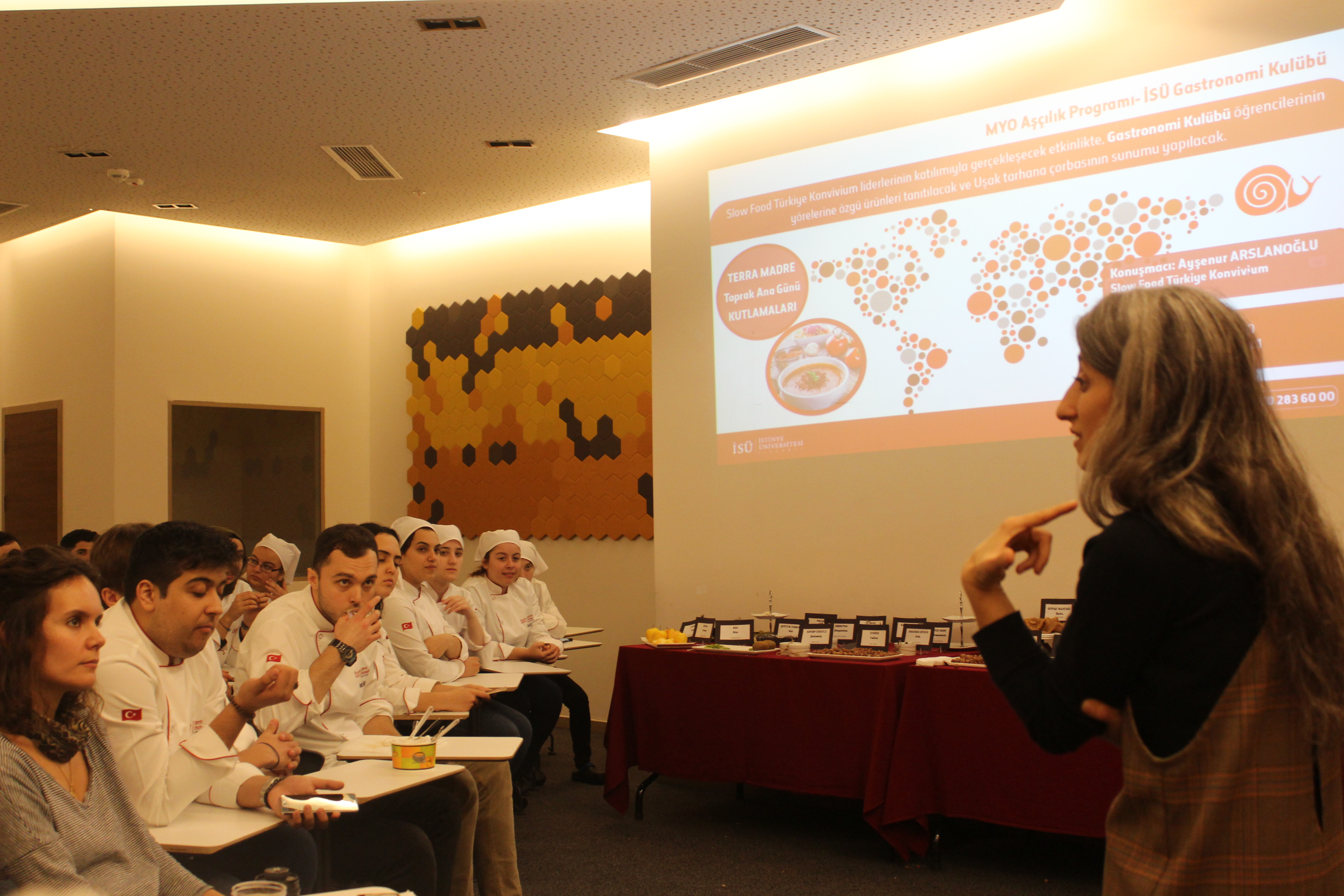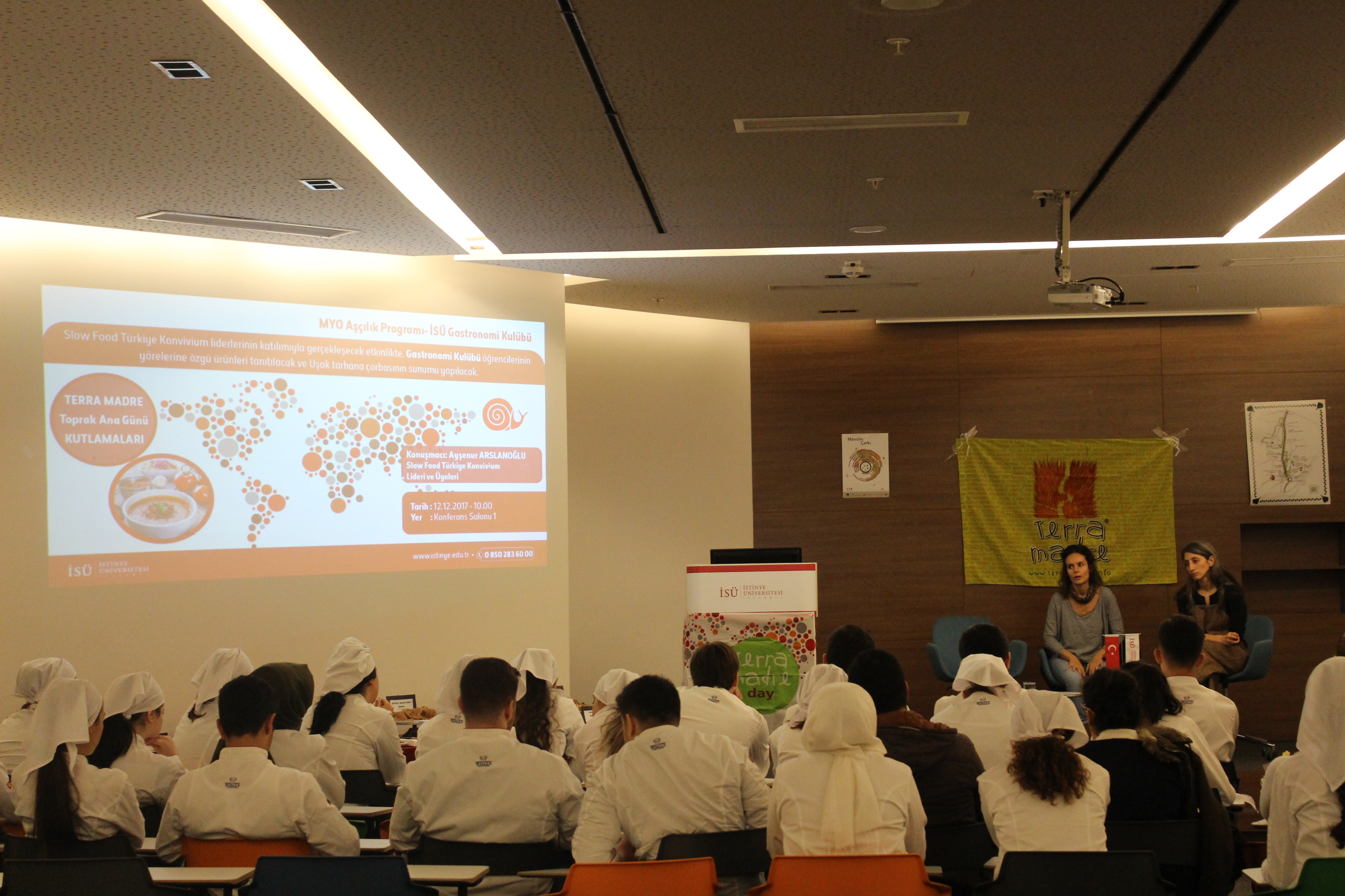 MYO Aşçılık Programı ve Gastronomi Kulübünün düzenlediği ‘’Terra Madre Toprak Ana Günü Kutlamaları’’ adlı etkinlik, Slow Food Türkiye Konvivium üyeleri Ayşenur ARSLANOĞLU ve Ahu KOPAN’ın katılımıyla üniversitemizde gerçekleşti.