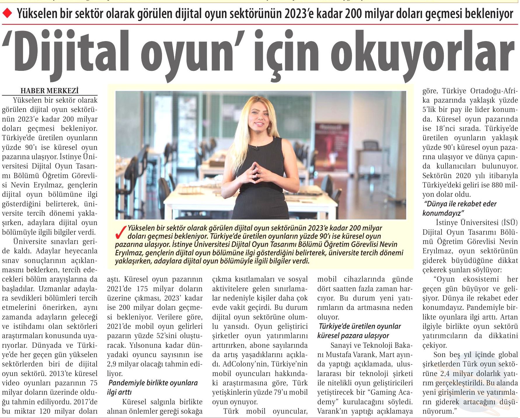 Bilgisayar Destekli Tasarım ve Animasyon program başkanımız ve Dijital Oyun Tasarımı bölüm kurucusu olan Öğretim Görevlisi Nevin Eryılmaz, dijital oyun sektöründeki gelişmelerden bahsederek üniversite adaylarının bölüme olan yoğun ilgisini anlattı.