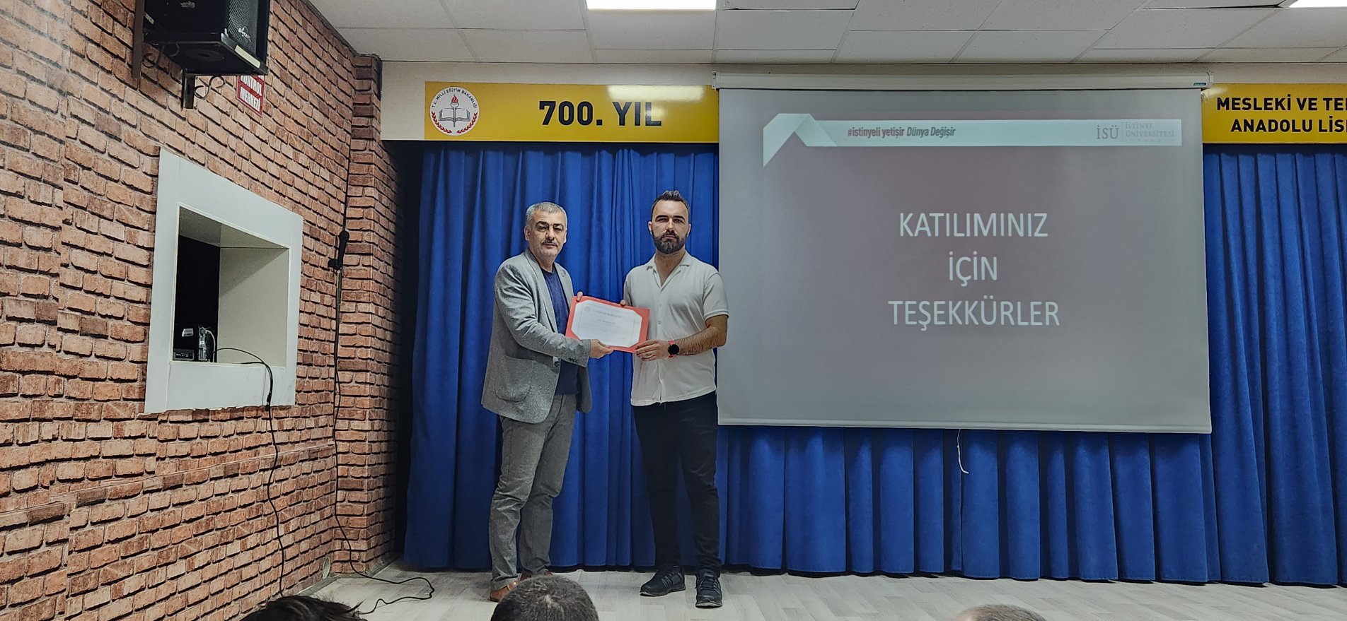 Bilişim Güvenliği Teknolojileri Program Başkanımız Ramazan ŞEN, 700.Yıl Mesleki ve Teknik Lisesi ATL Bilgisayar bölümü ortaöğretim öğrencilerine Bilgi Güvenliği ile ilgili seminer verdi.