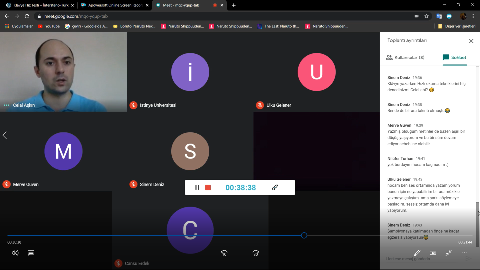 F Klavyeyi Dünya Şampiyonuna Soruyoruz başlıklı söyleşimiz, 04 Temmuz 2020 Cumartesi günü saat 19.00’da gerçekleşti. Dünya Şampiyonumuz Celal Aşkın, F klavye ile tanışma macerasından başlayarak, dünya şampiyonluğuna uzanan yolculuğunu paylaştı. Celal Aşkın halen Adalet Bakanlığı Eğitim Dairesi Başkanlığı Şube Müdürlüğü görevini yürütmektedir. Katiplikten, katiplik sınavı heyecanından, sınavlardaki dikkat edilmesi gereken konulardan detaylı bilgi verdi.