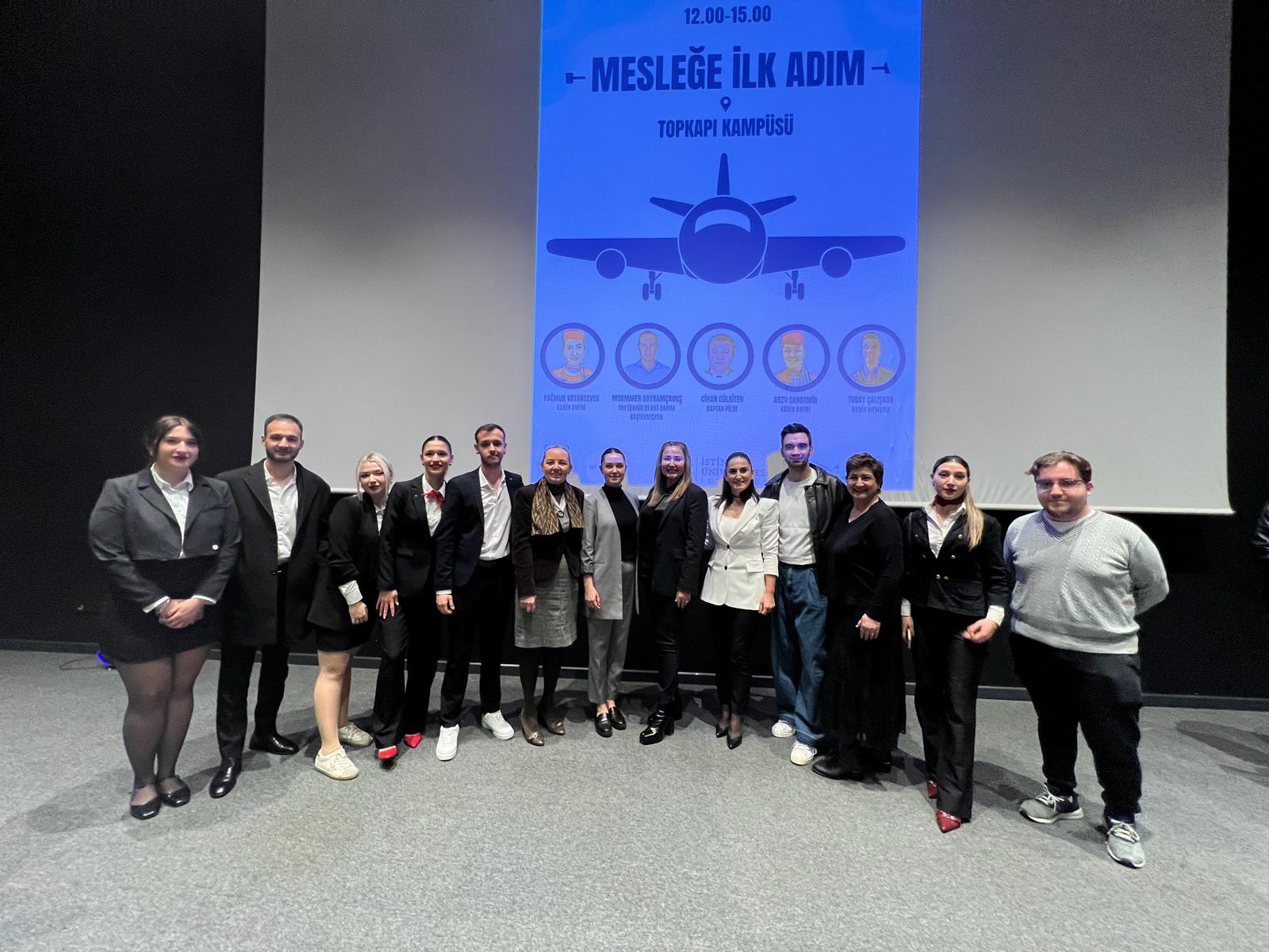 HAVACILIK VE UZAY KULÜBÜMÜZ tarafından düzenlenen ''MESLEĞE İLK ADIM'' temalı konferansımıza katılım sağlayan A350 Sorumlu Kaptan Pilotu Cihan Gülbiten, Kabin amirleri Yağmur Vatansever, Arzu Candemir, Kabin Memuru Tugay Çalışkan ve Başteknisyen Muammer Bayramçavuş'a öğrencilerimize olan değerli katkılarından dolayı teşekkür ederiz.