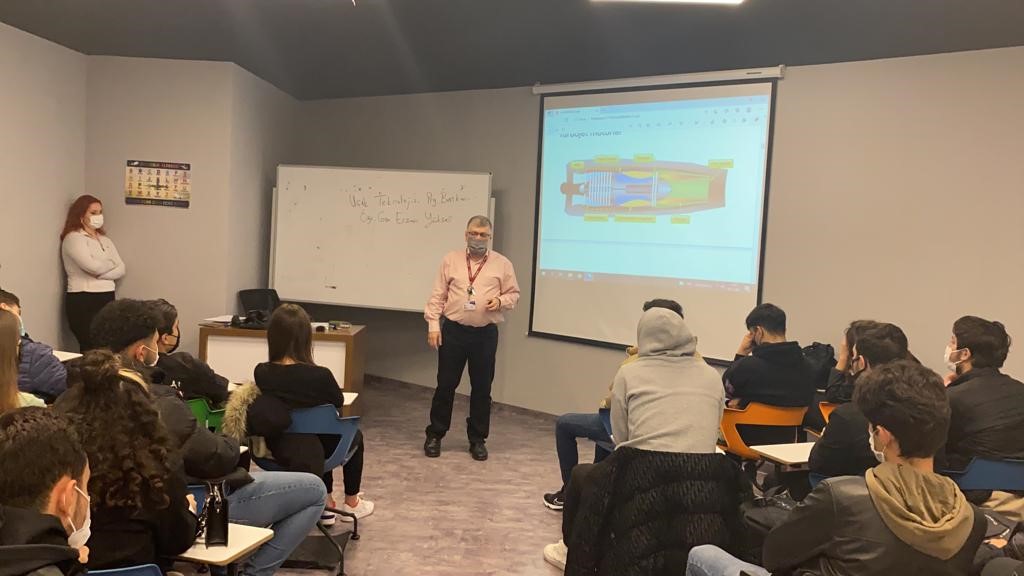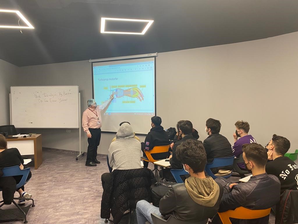 UÇAK TEKNOLOJİSİ PROGRAM BAŞKANI ÖĞRETİM GÖREVLİSİ SAYIN ERSAN YÜKSEL HOCAMIZ 1. SINIF ÖĞRENCİLERİMİZE UÇAKLARIN MOTORLARI VE KONTROL YÜZEYLERİ HAKKINDA ÖNEMLİ BİLGİLER AKTARDI. KATILIMI İÇİN TEŞEKKÜR EDERİZ.
