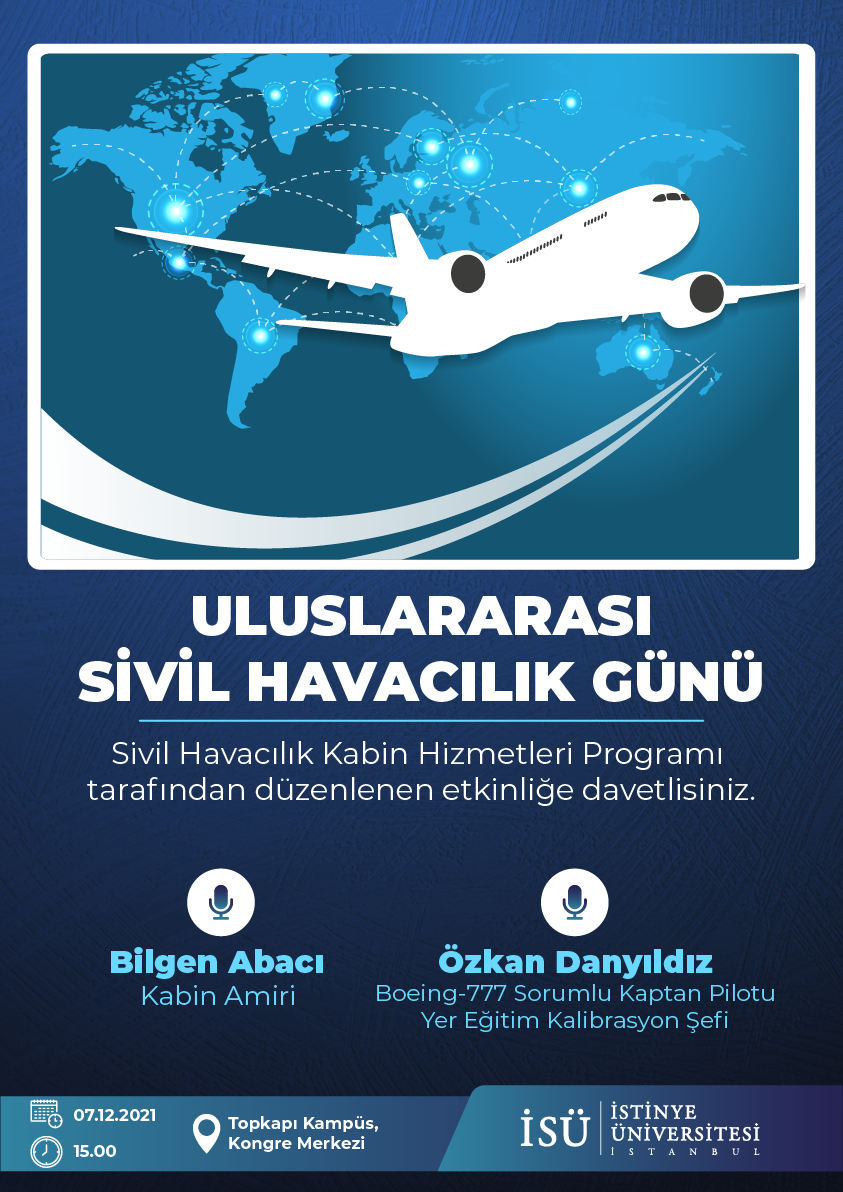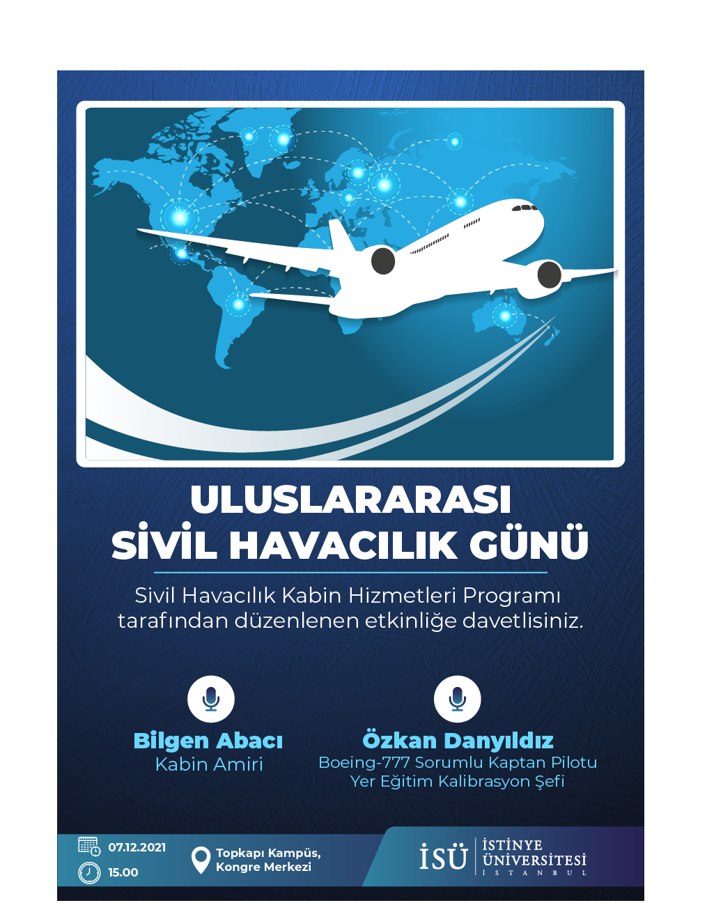 Uluslararası Sivil Havacılık Günü'ne davet edilen konuklarımız Sorumlu Kaptan Pilot Özkan DANYILDIZ ve Kabin Amiri Bilgen ABACI, ülkemiz açısından Uluslararası Sivil Havacılık Günü'nün anlam ve önemini belirterek Türk Sivil Havacılığının günümüzde ve gelecekte havacılık sektöründeki öneminden bahsetmişlerdir. Kabin memurluğu mesleğinin önemini vurgulayarak Sivil Havacılık Kabin Hizmetleri Programımız öğrencileri ve diğer katılımcılarımız üzerinde farkındalık yaratmışlardır.