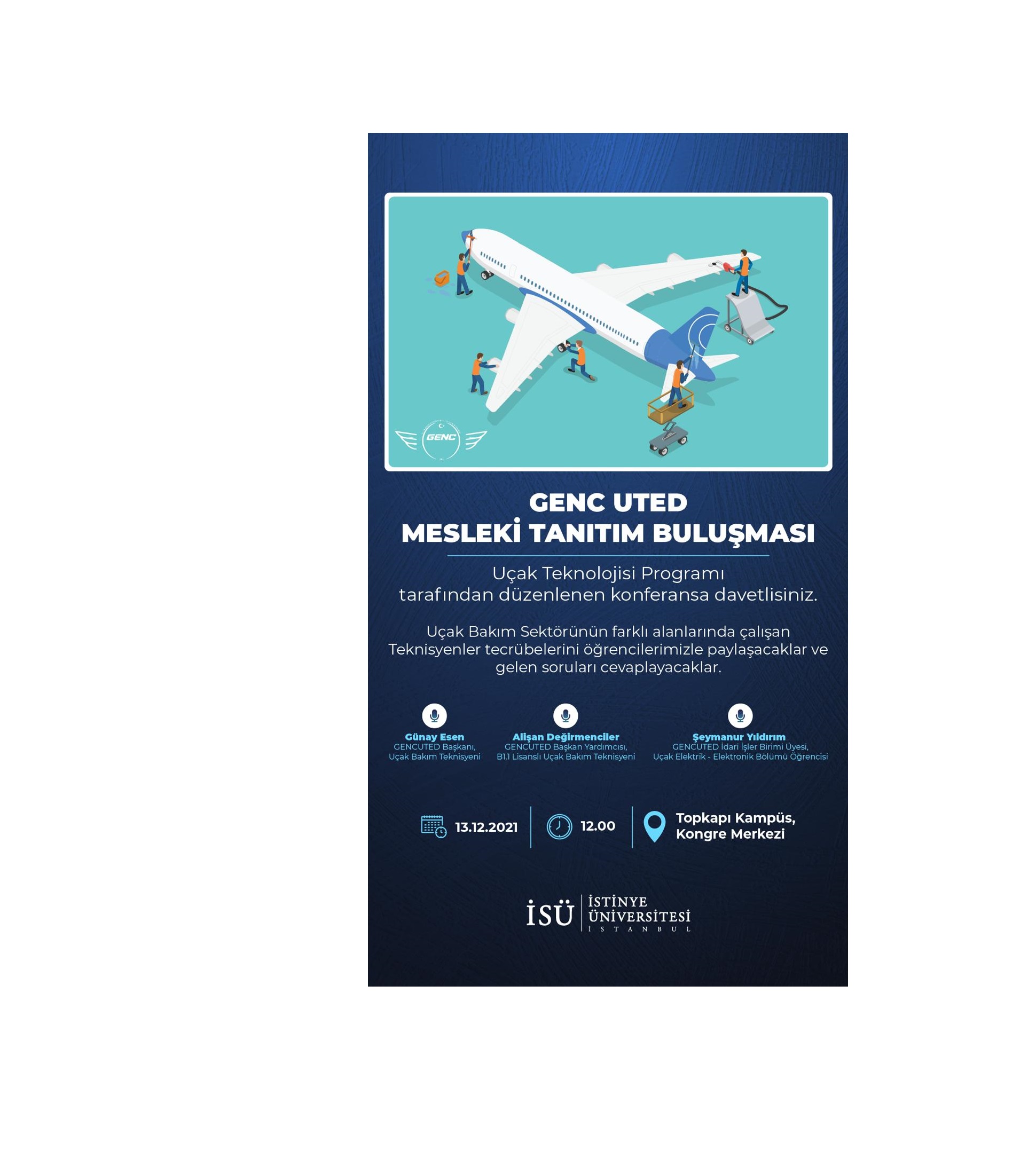 Uçak Teknolojisi Programının Topkapı Kampüsü Kongre Merkezinde düzenlenen etkinliğinde, Uçak Bakım Sektörünün farklı alanlarında çalışan Teknisyenler tecrübelerini öğrencilerimizle paylaştılar ve gelen soruları cevapladılar.