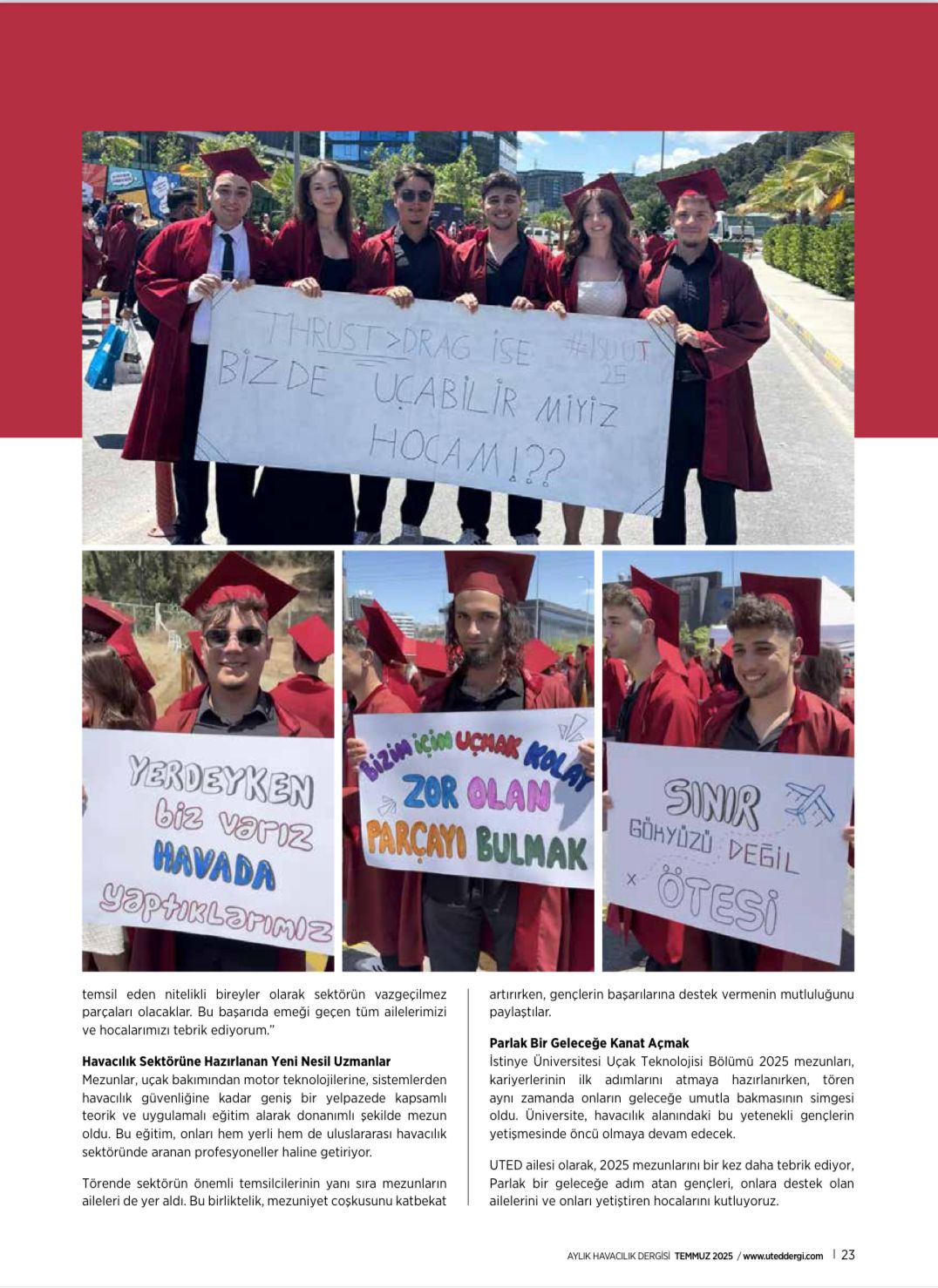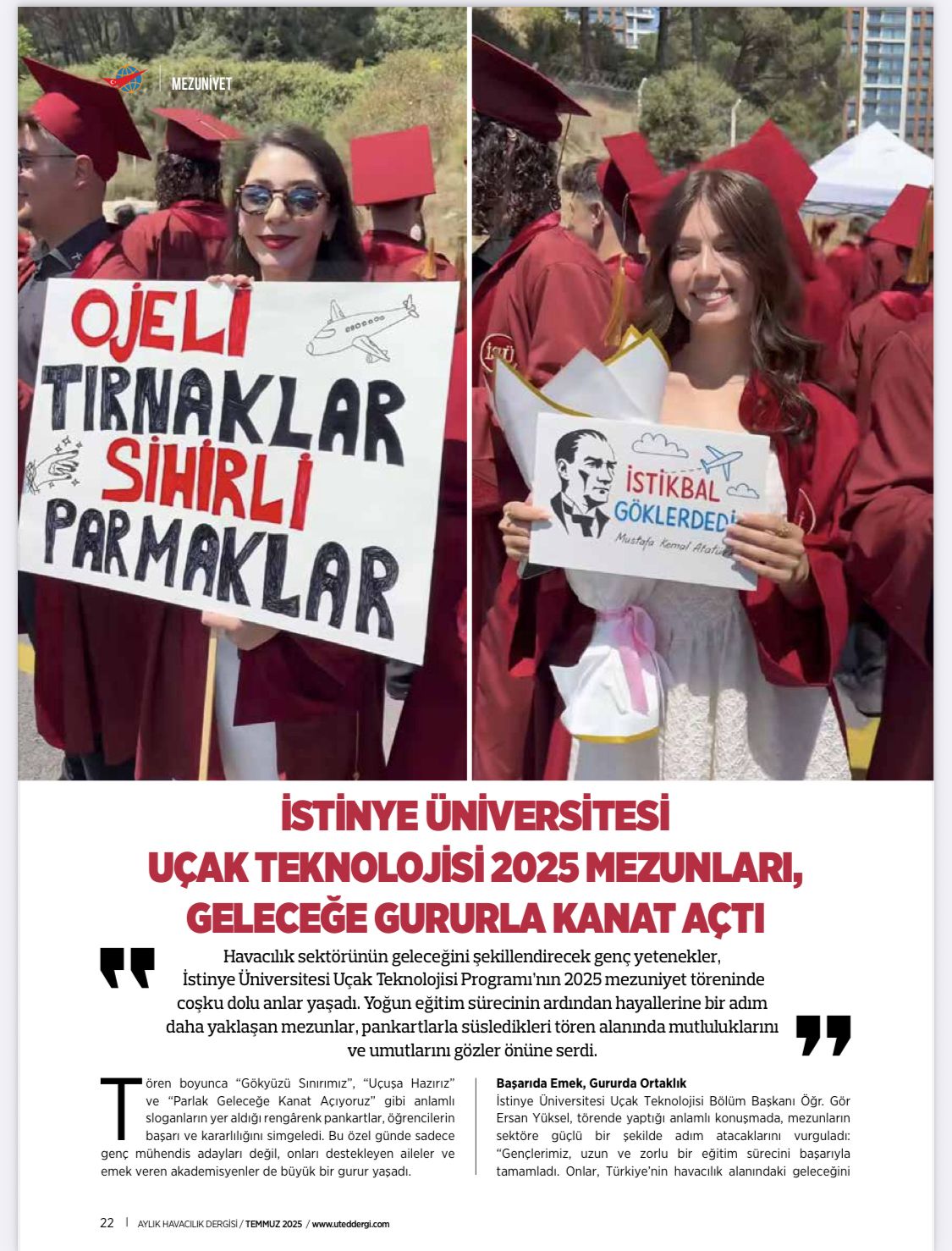 İstinye Üniversitesi Uçak Teknolojisi Mezuniyet Töreni Havacılık Sektörünün önde gelen dergisi UTED DERGİ’de haber oldu.