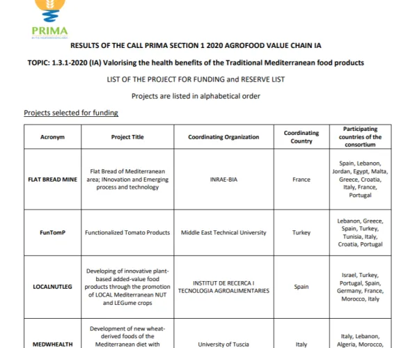 Beslenme ve Diyetetik Bölümü PRIMA Programı 2020 Section 1 Kapsamında Projesine Kabul Aldı