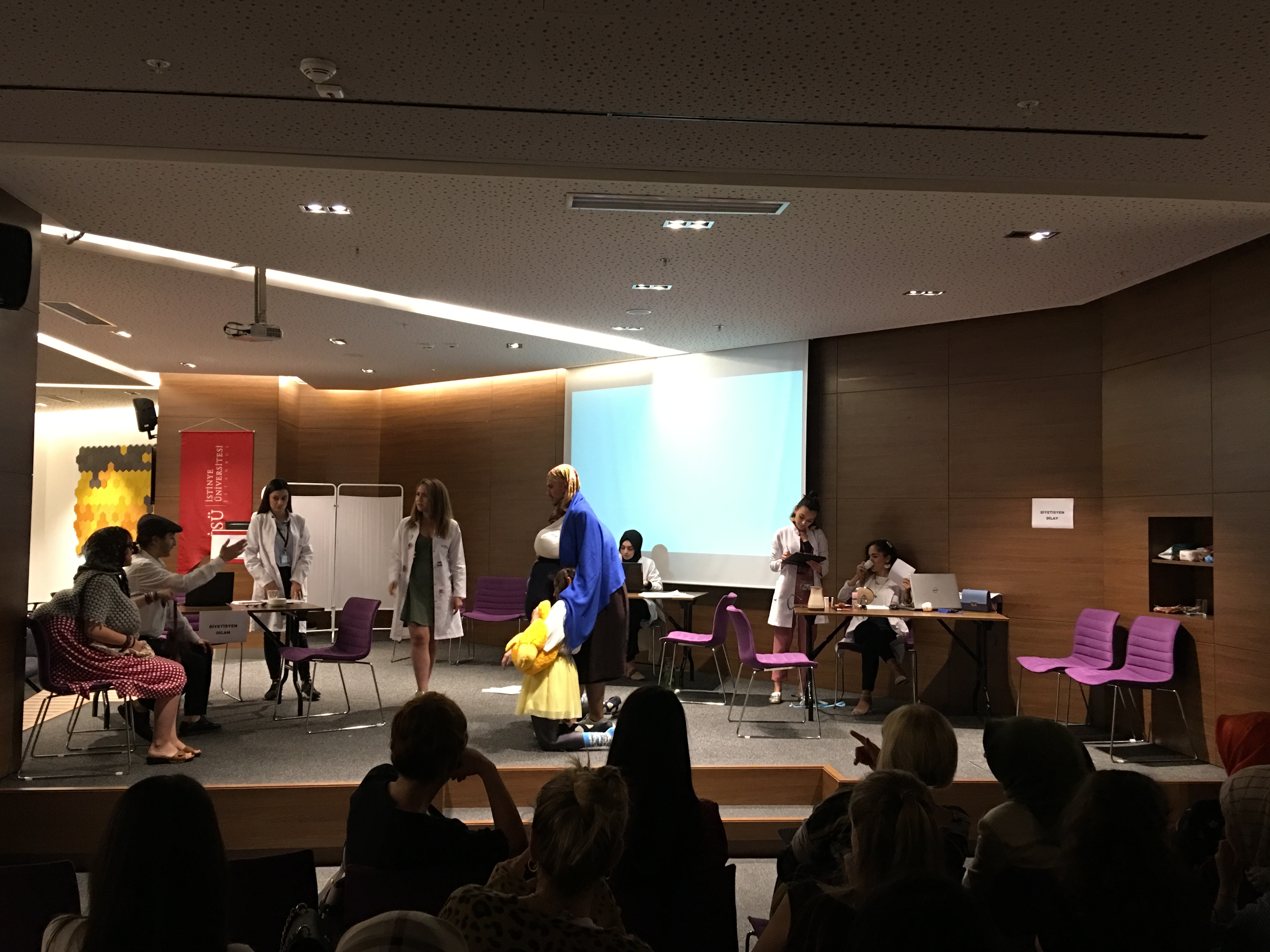 Beslenme ve Diyetetik Bölümü 4. sınıf öğrencileri tamamladıkları yaz stajına dair gözlemlerini; bölüm hocaları, sınıf arkadaşları ve İBB İSADEM yöneticilerine yoğun çalışmaları sonucu ortaya çıkardıkları tiyatro oyunu ile aktardı. Öğrencilerimizi bu keyifli çalışmalarından dolayı tebrik ederiz.