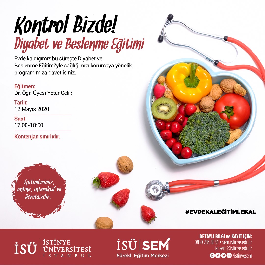 İSÜSEM tarafından organize edilen online etkinlikte, Dr. Öğr. Üyesi Yeter Çelik diyabetten korunmak için beslenme önerilerinde bulundu. Karbonhidratlar başta olmak üzere, mikro ve makro besin ögelerinin bireylerde diyabet gelişimi üzerine etkilerini açıklayan Çelik, katılımcıların sorularını yanıtlayarak interaktif bir eğitim gerçekleştirdi.