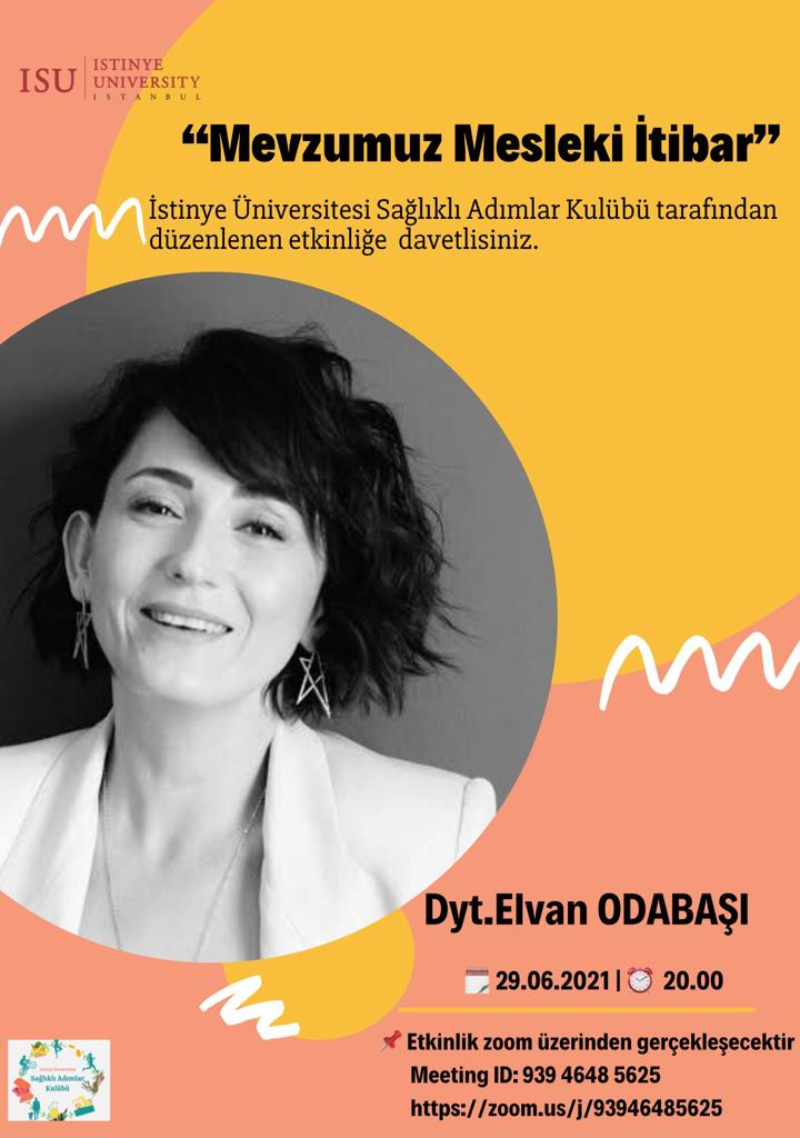 Diyetisyen Elvan ODABAŞI 29 Haziran Salı günü Sağlıklı Adımlar Kulübün düzenlemiş olduğu etkinliğe konuşmacı olarak katıldı ve ‘’Mevzumuz Mesleki İtibar’’ adlı sunumunu gerçekleştirdi.