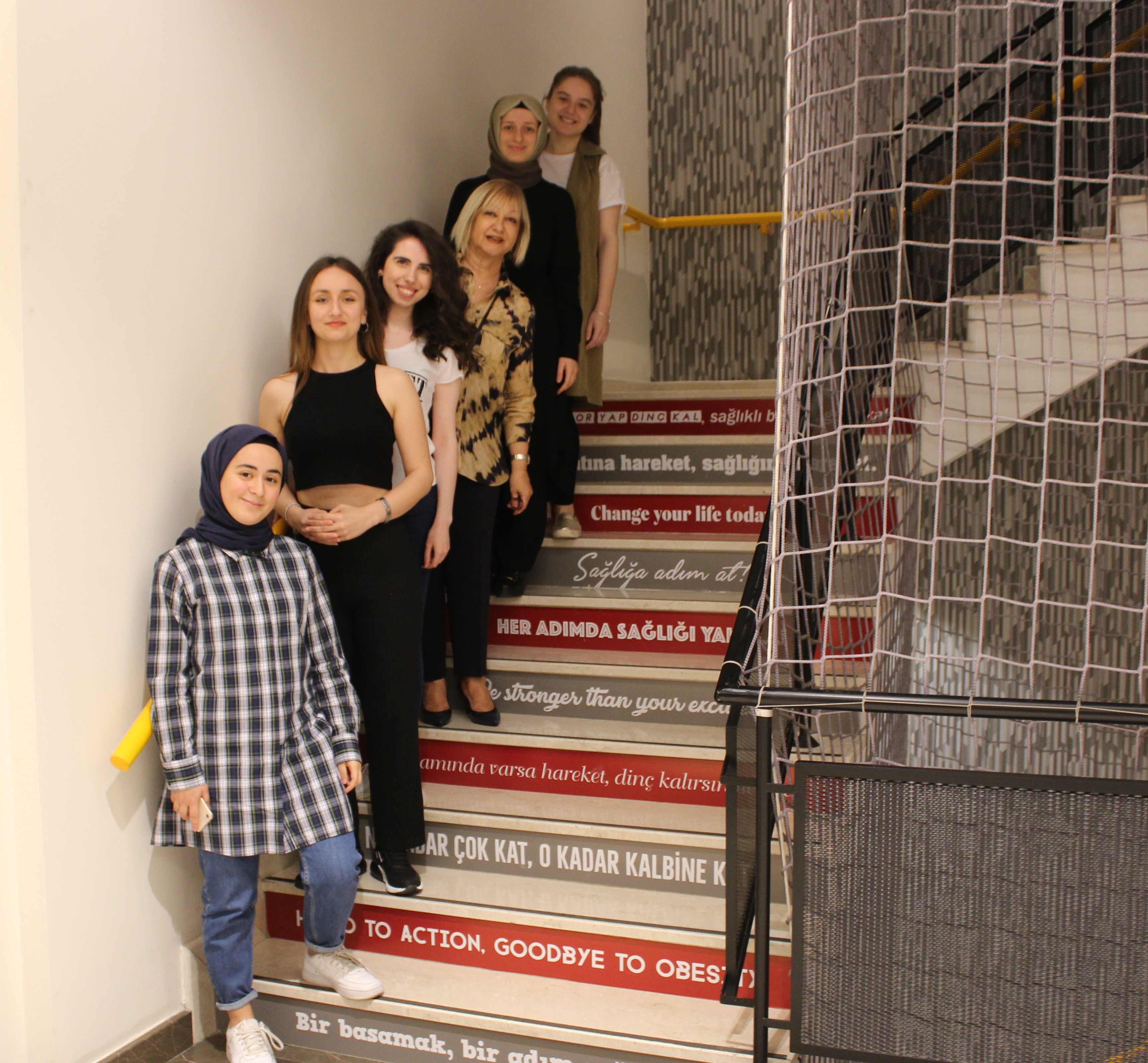 İstinye Üniversitesi Sağlık Bilimleri Fakültesi Beslenme ve Diyetetik Bölümü Başkanı Prof. Dr. Funda ELMACIOĞLU ve öğrencileri tüm dünyada en çok görülen sağlık sorunlarının başında gelen obeziteye karşı duyarsız kalmayarak kampüste yer alan merdivenleri hareketin fazla kilolarla mücadelede önemine vurgu yapan sloganlarla renklendirdi.