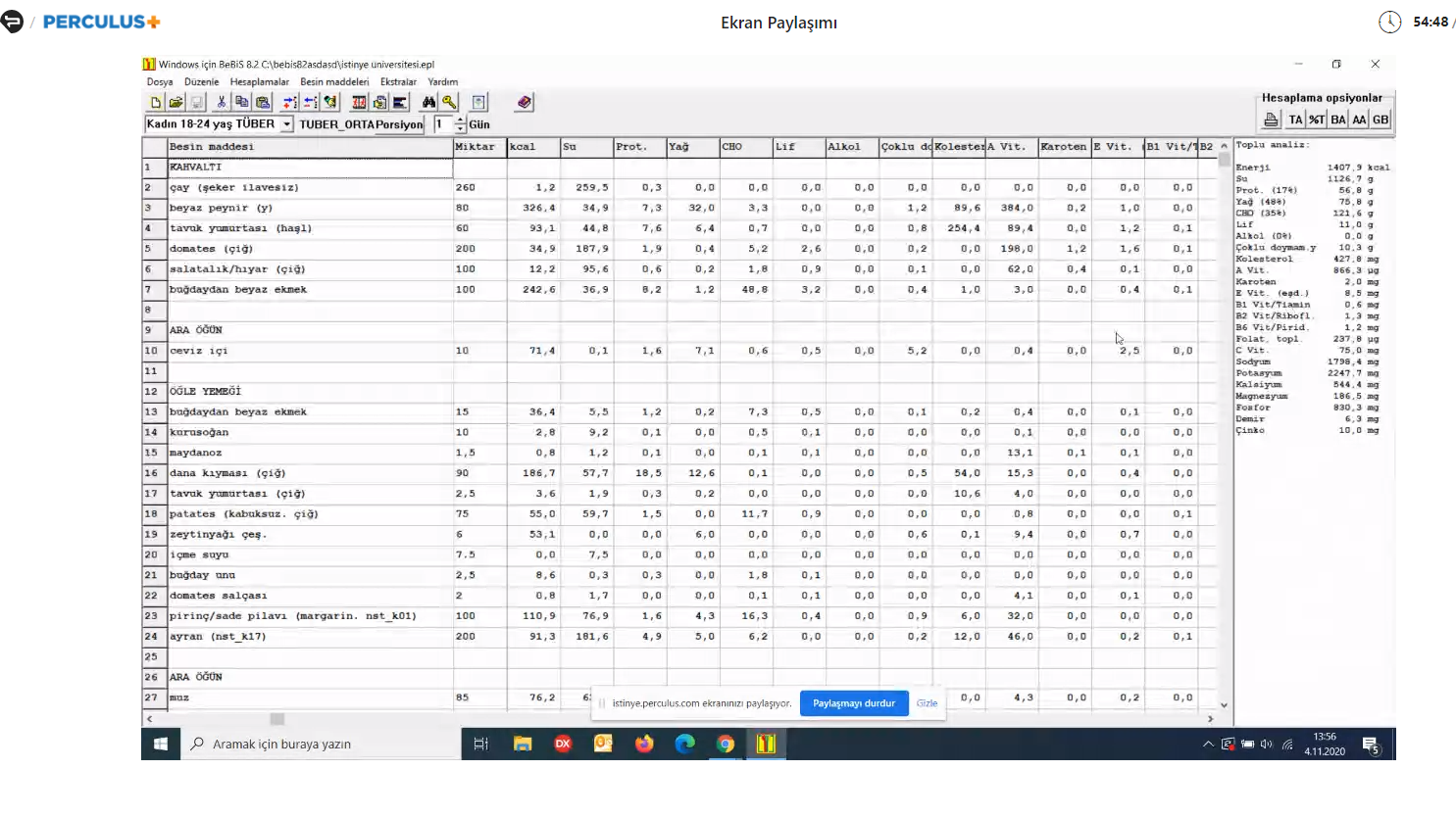 20.000 aşkın besin verisine sahiptir. İçeriğinde besinlerin 100 gr ya da porsiyonlara göre ne kadar tüketildiğinde, ne kadar kalori, su, protein, karbonhidrat, yağ, mineral ve vitamin içeriğine sahip olduğunun yanı sıra; amino asitler, yağ asitleri, antioksidan, glisemik indeks ve ORAC değerleri başta olmak üzere besin ögelerini ve elementlerinin raporlanmasını sağlayan bir yazılım programıdır. Hastalıkların Beslenme Tedavisi, Anne ve Çocuk Beslenmesi, Sporcu Beslenmesi gibi Beslenme ve Diyetetik'in tüm çalışma alanlarında kullanılabilmekte; bilimsel çalışma ve meslek uygulamalarında bireylerin beslenme durumunu saptamada derinlemesine araştırma yapma imkanı sunmaktadır.