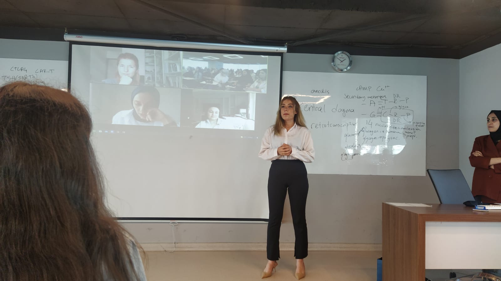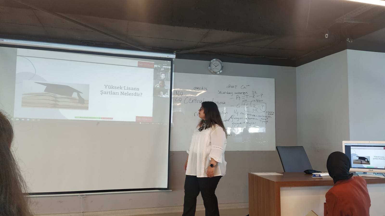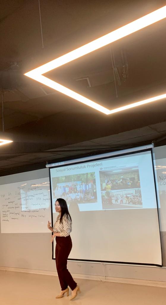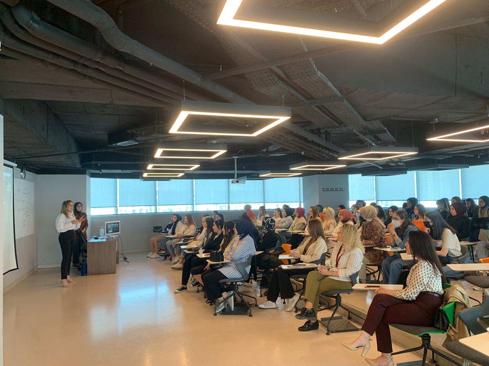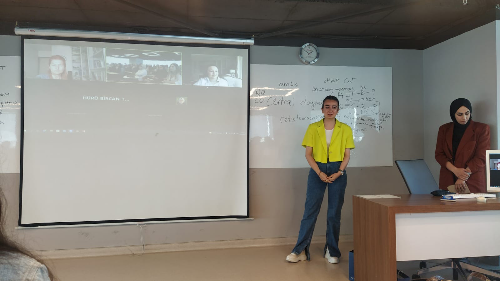Gönül Akay lisans eğitimi boyunca yapmış olduğu projelerini, akademik başarılarını ve yayınlarını aktarmış olup ardından mezun olduktan hemen sonra çalışmış olduğu MLPCARE Sağlık Grubundaki çalışma faaliyetlerini, hastanedeki yönetimsel süreçlerini, aksiyon ve operasyonel çalışma stratejilerini bizlere aktarmıştır.