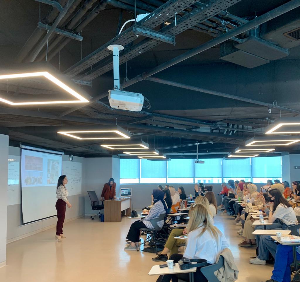 Melike Ebrar Bilgin yapılan etkinlikte özel eğitim kurumlarında çalışma süreçleri çocuk gelişimcinin özel eğitimde ki yeri görev ve sorumlulukları özel eğitimde çalışmanın ayrıcaklıkları ve kariyer hedeflerini bizimle paylaşmıştır.