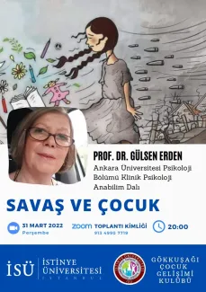 Gökkuşağı Çocuk Gelişimi kulübü tarafından düzenlenen 'Savaş ve Çocuk' konulu seminer Prof. Dr. Gülsen Erden'in anlatımıyla online olarak gerçekleştirilmiştir. Davetimizi kabul ettiği ve değerli bilgilerini öğrencilerimiz ile paylaştığı için Prof. Dr. Gülsen Erden'e ve bizlerle birlikte olan tüm katılımcılarımıza teşekkür ederiz.