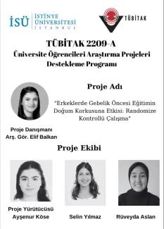Sağlık Bilimleri Fakültesi, Ebelik Bölümü Araştırma Görevlisi Elif Balkan danışmanlığında, ebelik bölümü öğrencileri Ayşenur Köse, Selin Yılmaz, Rüveyda Aslan'ın hazırlamış olduğu '' Erkeklerde Gebelik Öncesi Eğitimin Doğum Korkusuna Etkisi: Randomize Kontrollü Çalışma'' isimli TÜBİTAK 2209-A projesi kabul aldı.