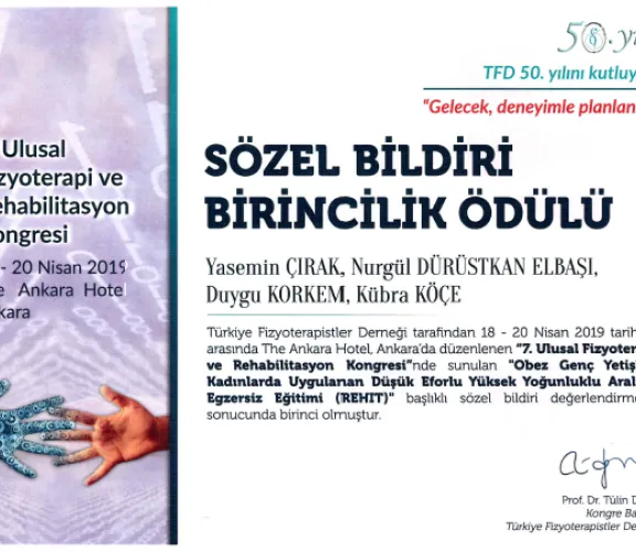 7. Ulusal Fizyoterapi ve Rehabilitasyon Kongresinde Birincilik