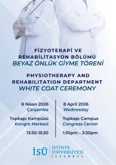 İstinye Üniversitesi, Fizyoterapi ve Rehabilitasyon Bölümü tarafından 8 Nisan 2026, saat 13.30'da gerçekleşecek olan “Beyaz Önlük Giyme Töreni” isimli etkinliğe davetlisiniz.