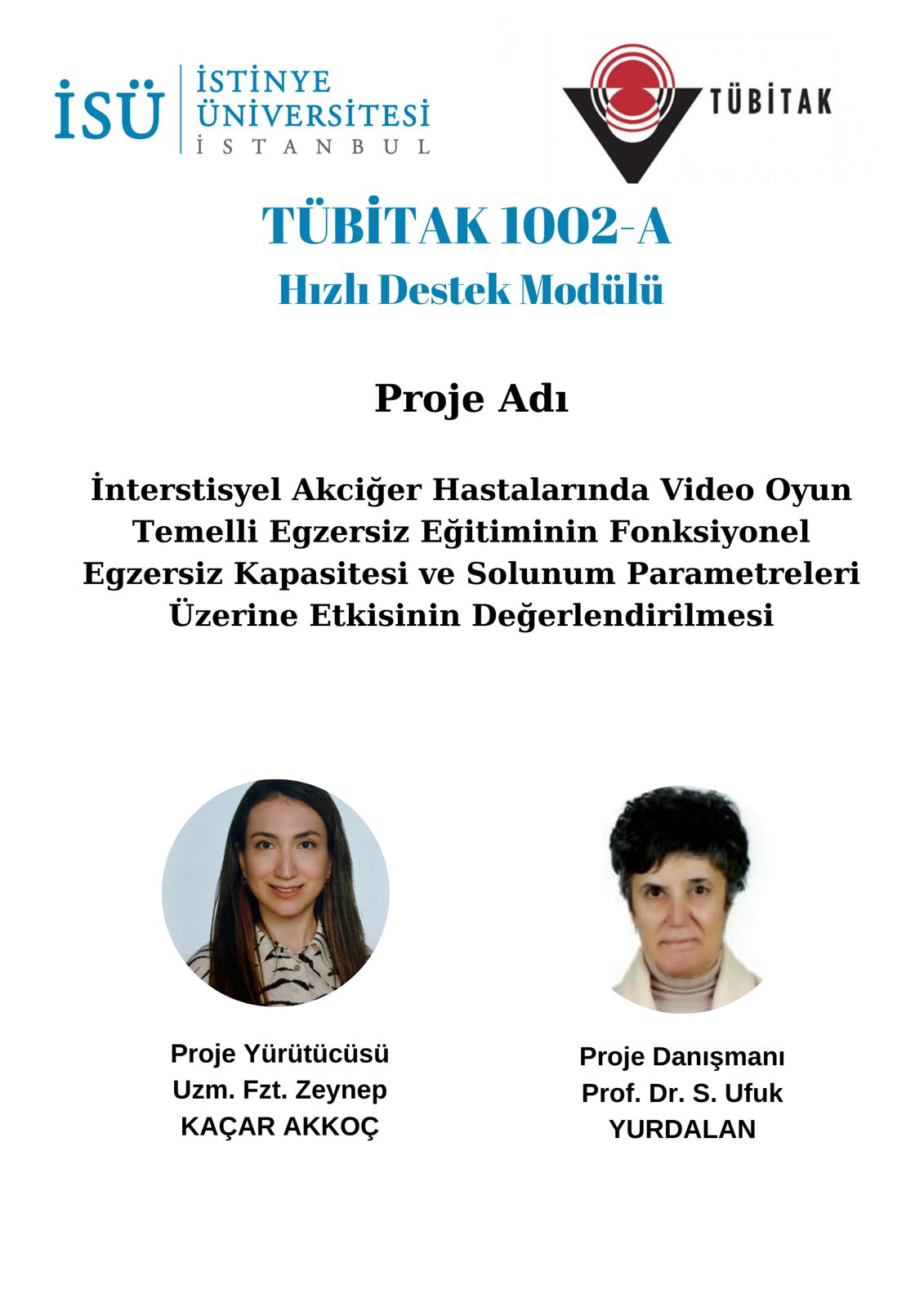 TÜBİTAK 1002-A Hızlı Destek Modülü kapsamında İstinye Üniversitesi Lisansüstü Eğitim Enstitüsü Fizyoterapi ve Rehabilitasyon Doktora Programı öğrencisi Zeynep KAÇAR ve danışmanı Prof. Dr. S. Ufuk YURDALAN hocamızın “ İnterstisyel Akciğer Hastalarında Video Oyun Temelli Egzersiz Eğitiminin Fonksiyonel Egzersiz Kapasitesi ve Solunum Parametreleri Üzerine Etkisinin Değerlendirilmesi” başlıklı projesi desteklenmeye hak kazanmıştır. Öğrencimizi ve akademisyenimizi tebrik eder, başarılar dileriz.