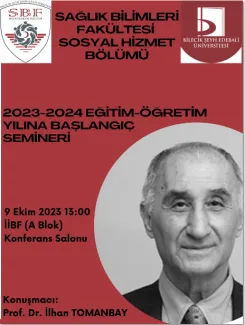 Prof. Dr. İlhan Tomanbay, 09.10.2023 tarihinde Bilecik Şeyh Edebali Üniversitesi Sosyal Hizmet Bölümü'nün akademik yıl açılışında seminer verdi. Seminere Bilecik Şeyh Edebali Üniversitesi Sosyal Hizmet Bölümü öğretim elemanları Dr. Öğr. Üyesi Gül KARAHAN ÇOBAN, Dr. Öğr. Üyesi Ekrem SALTIK, Dr. Öğr. Üyesi Hacer TAŞKIRAN TEPE, Dr. Öğr. Üyesi Sibel EZGİN AĞILLI, Arş. Gör. Bahadır DİNÇ, Arş. Gör. Gülsüm ARSLAN ve tüm sınıflardan Sosyal Hizmet Bölümü öğrencileri katılım sağladı.