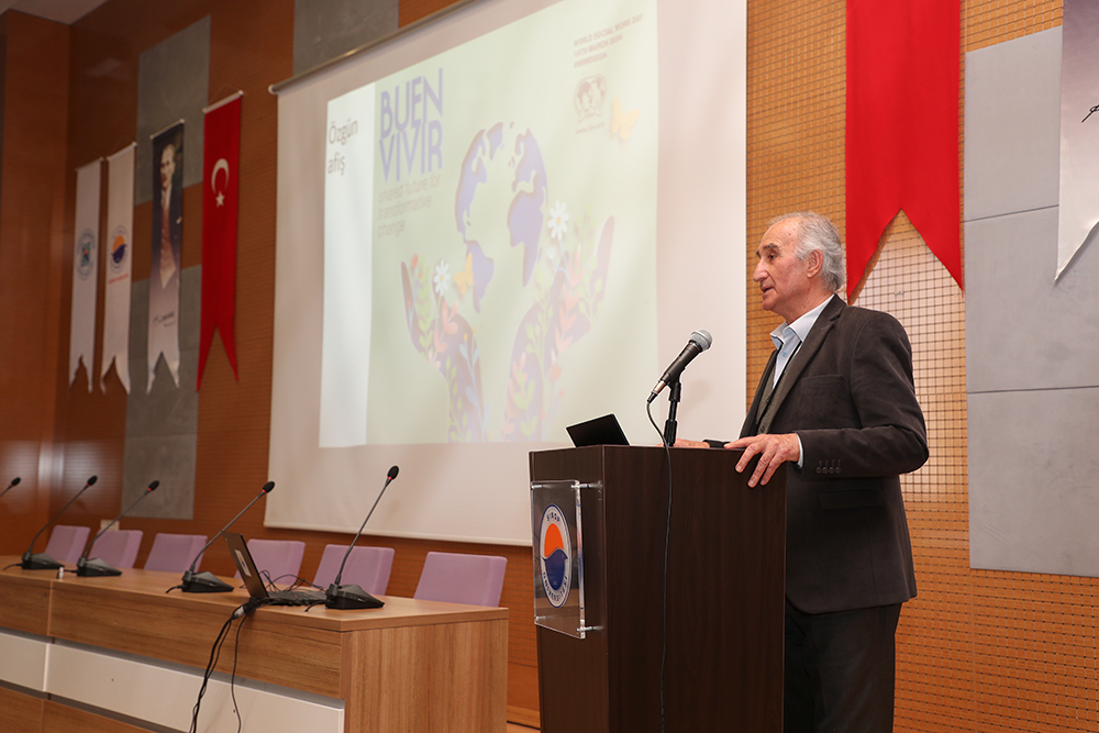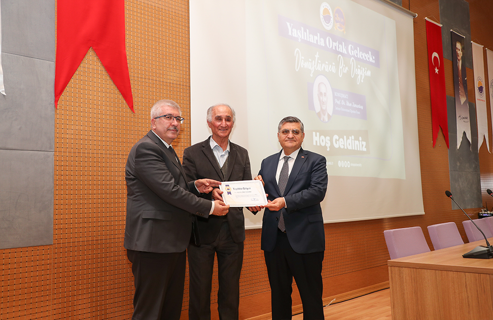 Sosyal Hizmet Bölüm Başkanı Prof. Dr. İlhan Tomanbay, Sinop Üniversitesi'nde "Yaşlılarla Ortak Gelecek: Dönüştürücü Bir Değişim" başlıklı konferans verdi. İlahiyat Fakültesi Konferans Salonunda düzenlenen programa; Sinop Valisi Dr. Mustafa Özarslan, Sinop Üniversitesi Rektörü Prof. Dr. Şakir Taşdemir, Rektör Yardımcıları Prof. Dr. Muhitdin Yılmaz ve Prof. Dr. Rıza Bayrak, Fakülte Dekanları, Kurum Müdürleri, akademik-idari personel, kıdemli gençler, öğrenciler ve davetliler katıldı. Prof. Dr. İlhan Tomanbay verdiği “Yaşlılarla Ortak Gelecek: Dönüştürücü Bir Değişim” konulu konferansta yaşlıların toplumdaki rolü, yaşlanma sürecinde sağlık ve refahın korunması, yaşlılara yönelik hizmetlerin iyileştirilmesi ve yaşlı nüfusun katılımı ve saygınlığı gibi konuları ele aldı. Bu kapsamda sosyal sağlığın önemine de vurgu yaptı. Yaşlı bireylerin toplumla bağlarını güçlendirmenin önemine vurgu yapan Prof. Dr. İlhan Tomanbay, sosyal etkileşim içerisinde olan yaşlıların yaşam kalitesini artırabileceğini; fizyolojik, mental ve ruhsal olarak daha sağlıklı kalmalarını sağlayabileceğini söyledi. Dolayısıyla aktif yaşlanma sürecinde Sosyal Çalışma mesleğinin önemine dikkat çekti.